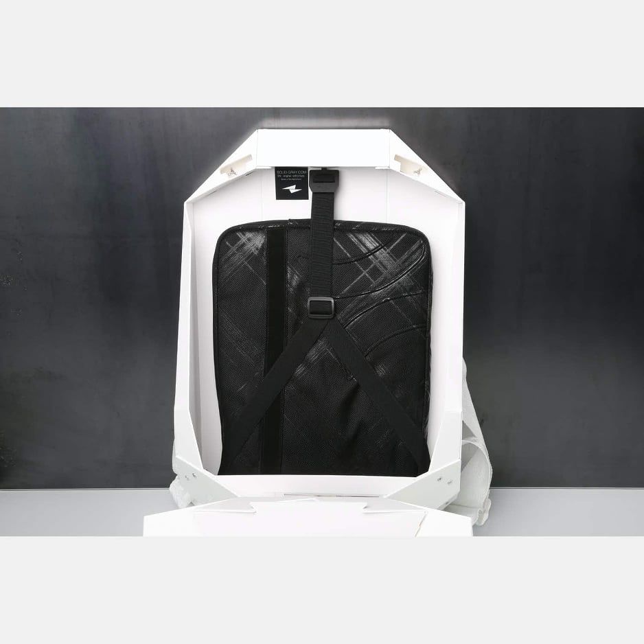 Made of a single sheet of copolymer, the Solid Gray backpack is, first and foremost, extremely lightweight. The weight feels comparable to a tablet, which, considering the size, means it’s pretty thin. The origami-meets-armadillo-meets-ninja turtle design is certainly strange and unique, and it almost makes you look like a stormtrooper student heading to class. Solid Gray can accommodate a volume of 15 liters, or approximately four gallons. It will also fit a laptop up to 15.6-inch in screen size. This is plenty of volume, but the strange shape of the bag is hard to adjust. Much of the weight of the bag, once items are stuffed inside, falls in the extruding part, which does little to evenly distribute weight. Again, this isn’t fun to endure if you’re aiming to travel heavily with this bag. Did I mention the edges of the bag are also a bit sharp? Be careful when opening and packing the bag as you might end up scratching yourself if not careful.