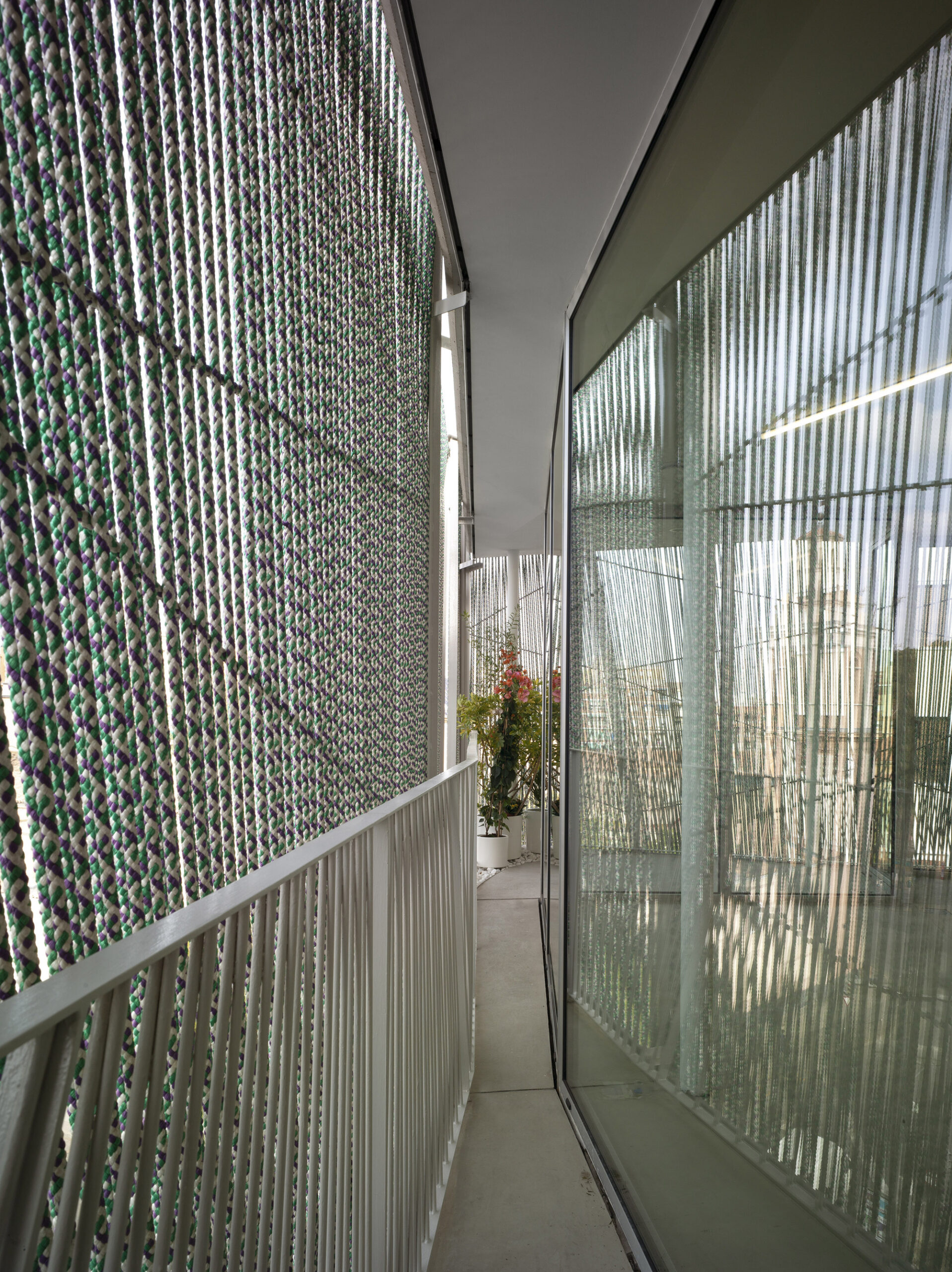 Local crafts and industrial elements. Exploring ornamentation and traditional crafts through the new industrial technique of local manufacturers (such as steel and rope latticework) and a contemporary reinterpretation, in a constant dialogue with the artisan elements of the pre-existing building. In the building extension, the rope lattice and the stainless-steel die-cut sheet lattice are performed by local artisans.