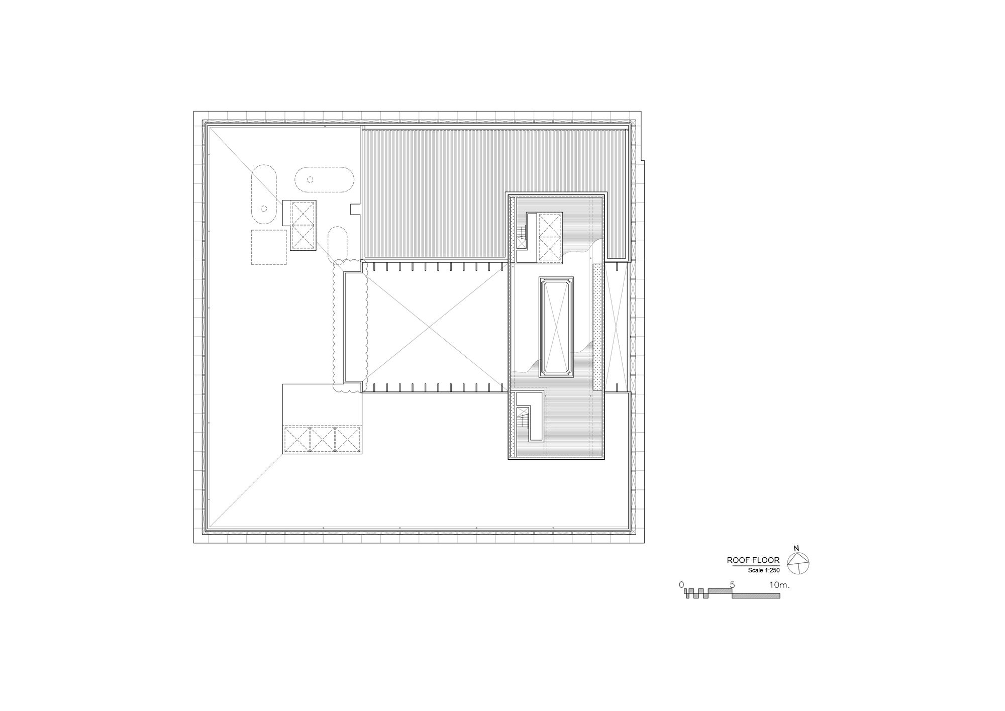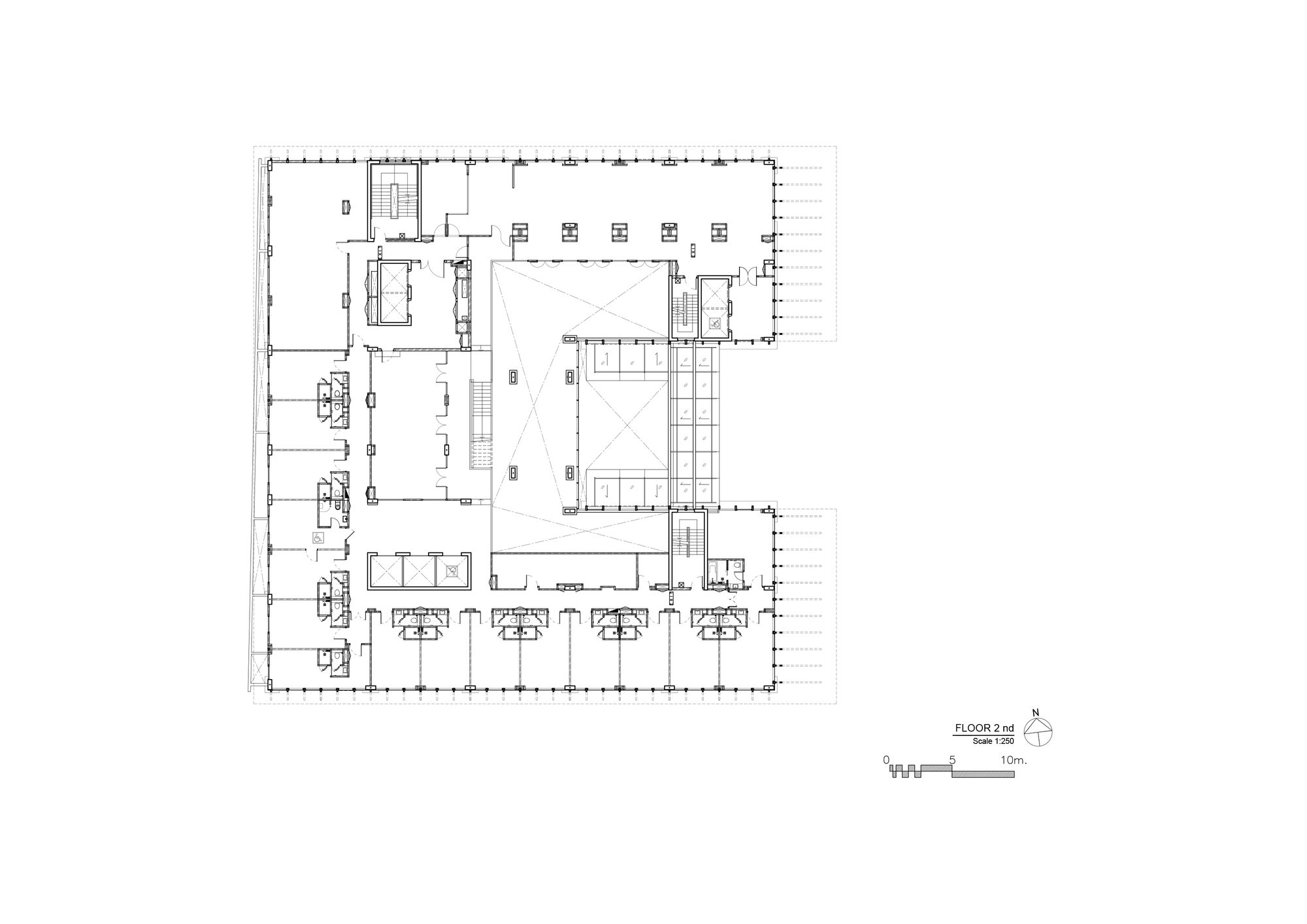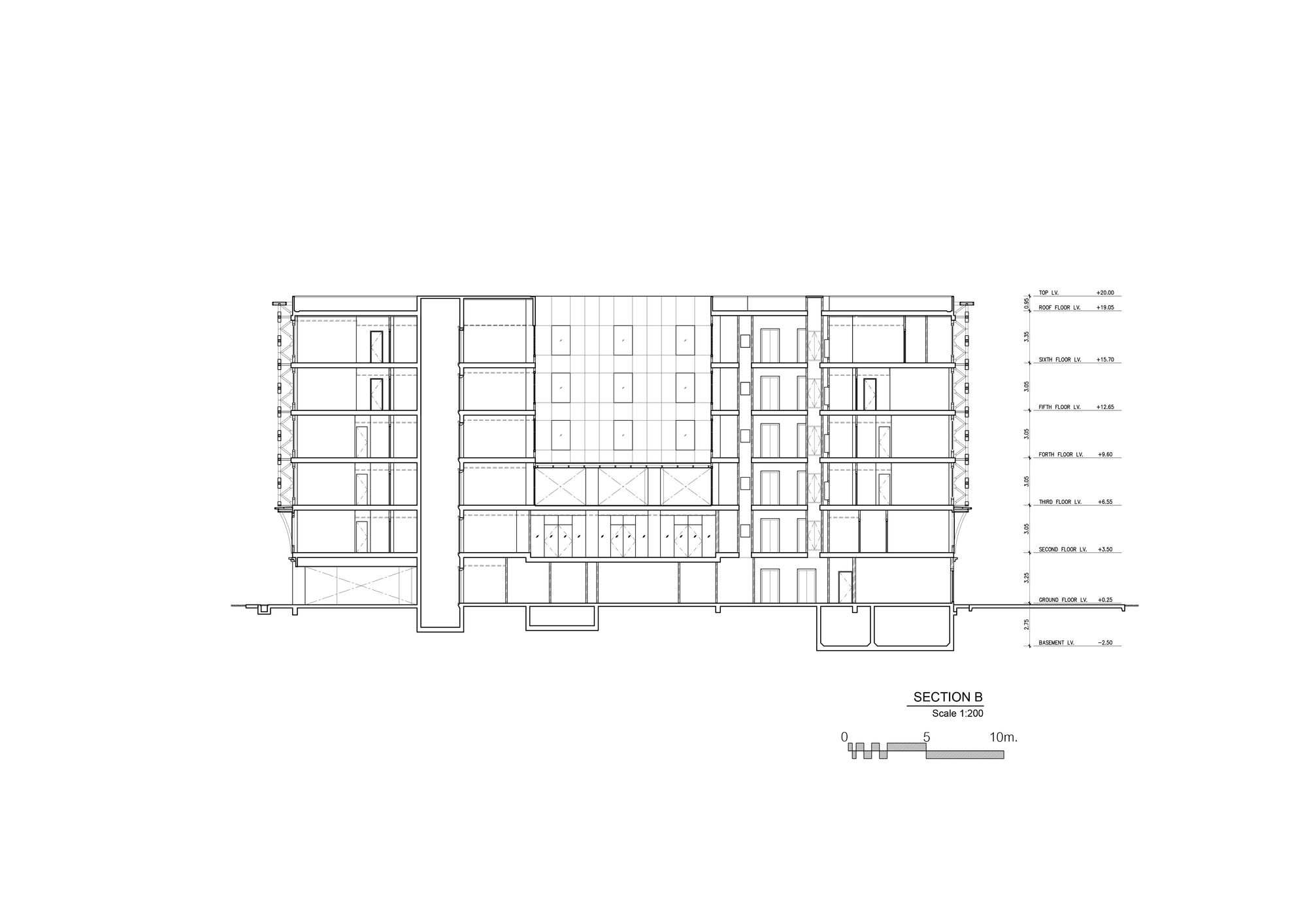 The front side is gradually opened to be a welcome main approach to the building. In the courtyard, the pillar-like vertical fins represent the traditional Thai temple pillar. At the end of the group of pillars, reflecting glass wall is designed and situated in order to create a visual continuous hall. The bridge on the roof is initially designed to be a rooftop bar. Its bottom is covered with mirror finished aluminum composite panels with a different angle in each panel. Not only it creates an illusion reflecting effect but also referred to be identical to a character of mosaic glasses on Thai pagoda.