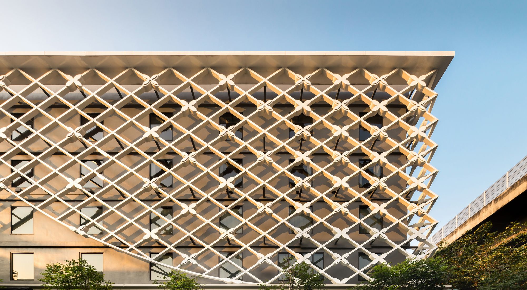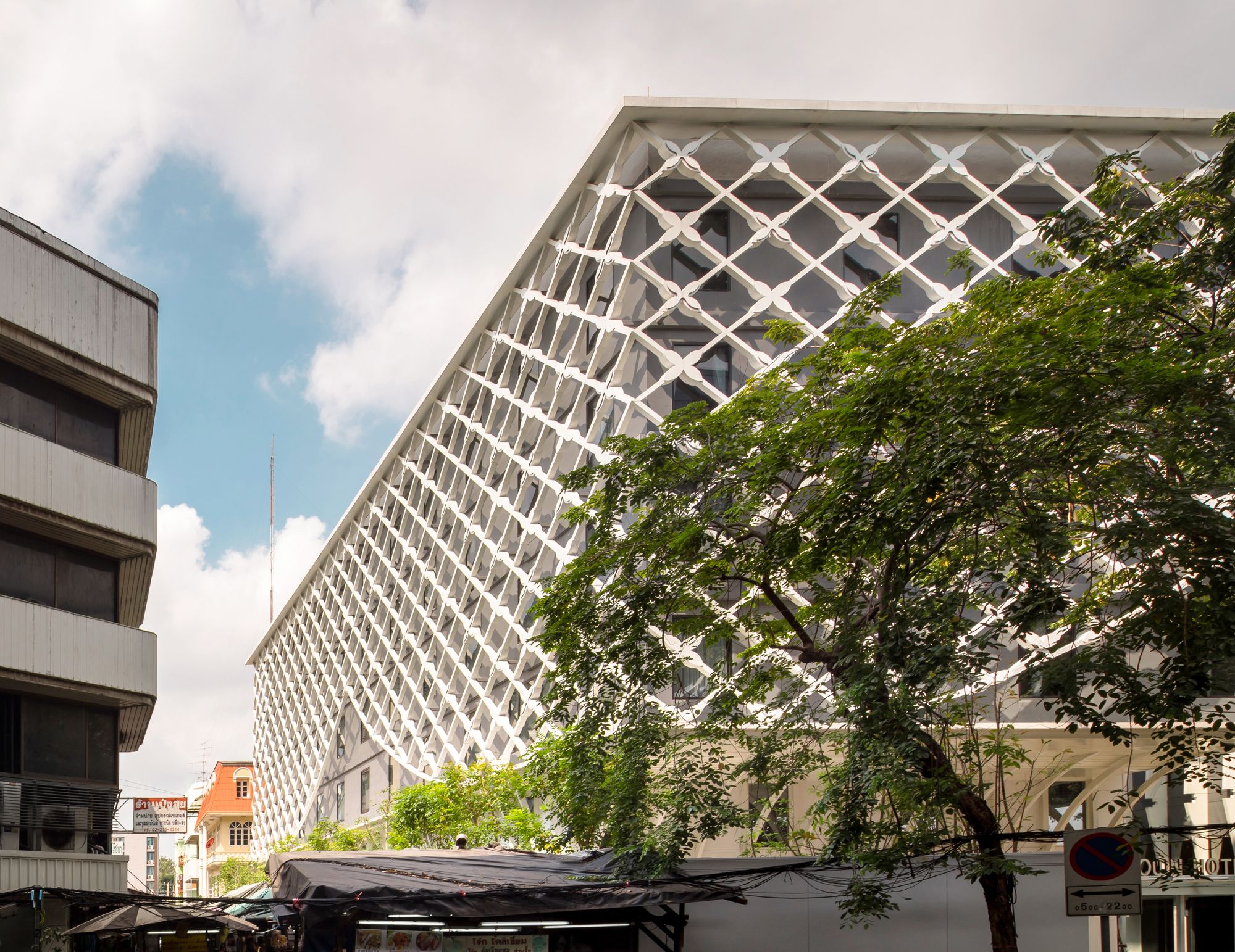 Our main concept of the project is to reinterpret a visual definition of “traditional Thai” and transform it to be “Contemporary Thai” architecture. The Thai traditional floral mobile is purposed as building facade pattern and a visual filter for both users and neighborhood. The façade also acts as a second skin and sunshade of the building which creates a shape-duplicated shadow on the wall.
