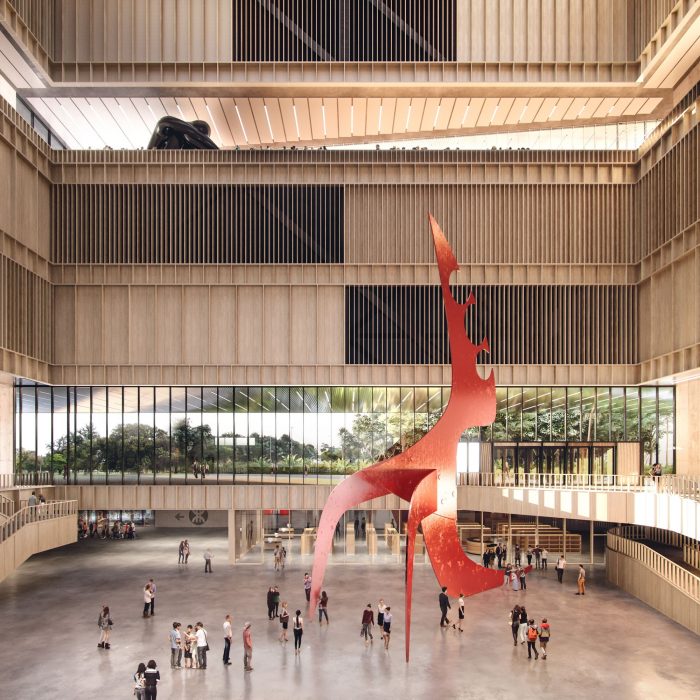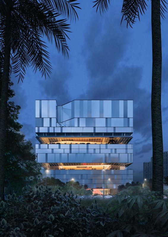 Surrounded by residential towers and infrastructure, the site for the Bao’an Public Culture and Art Center presents several challenges. Mecanoo reinterpreted these challenges as opportunities, capitalizing on the proximity of the new cultural facility to the adjacent Bao’an Central Metro Station and the Binhai School.
