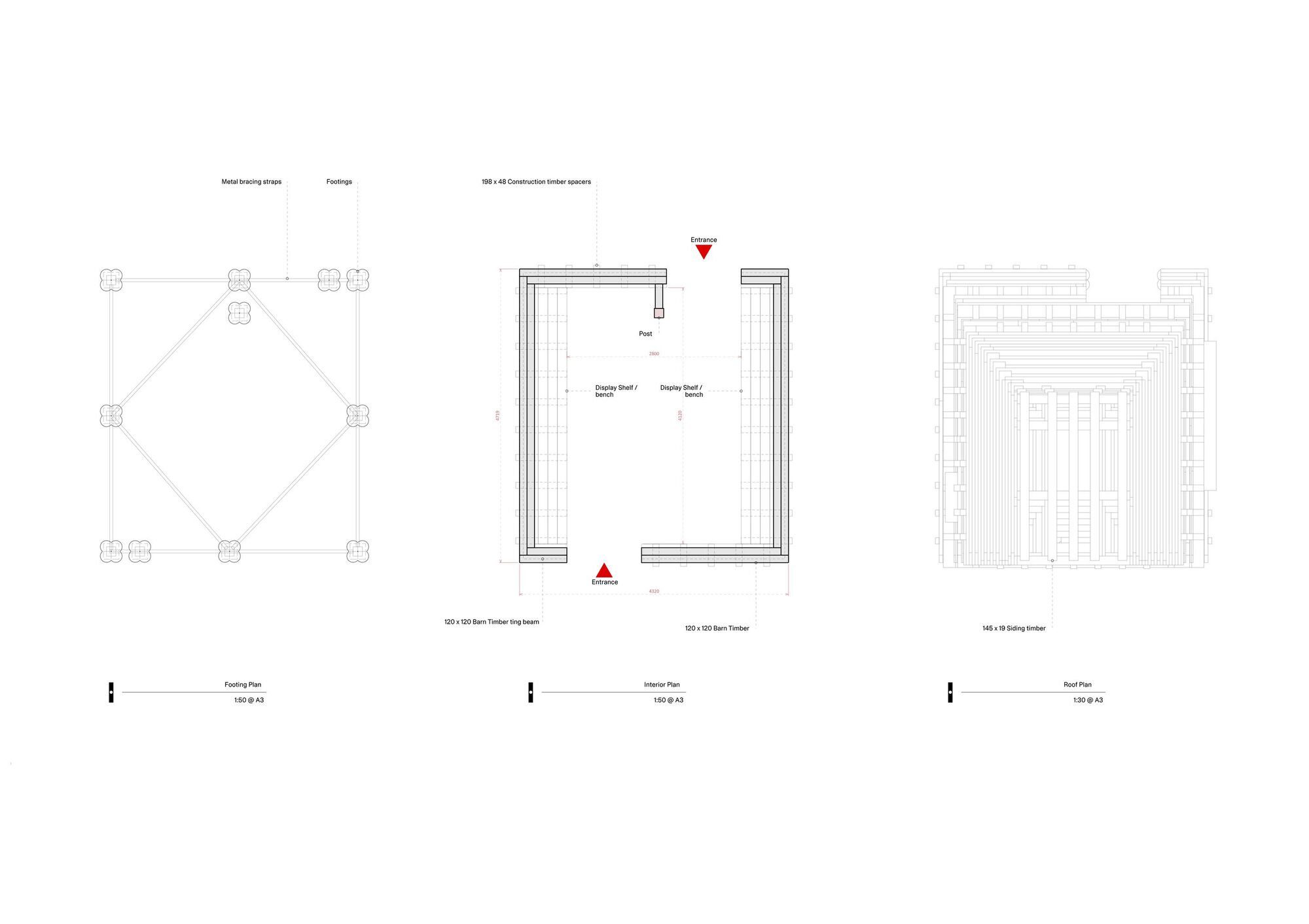 Barn Again offers a powerful reflection on craft, reuse, and sustainability in contemporary architecture, asking passers-by to slow down and reflect on the pace of their own busy day-to-day lives. At its core, Barn Again is a meditation on slowness, inviting visitors to pause, gather, and reflect within a space that stretches the lifespan of its material components. THISS Studio and Tom Svilans won the commission via an international competition. Their brief was to create a pavilion within a busy thoroughfare that could offer shelter and space for a programme of events throughout the Biennial. The stacked timber enclosure offers both openness, through spaced joints and thresholds, and intimacy, with sheltered seating and a kiosk for small gatherings.