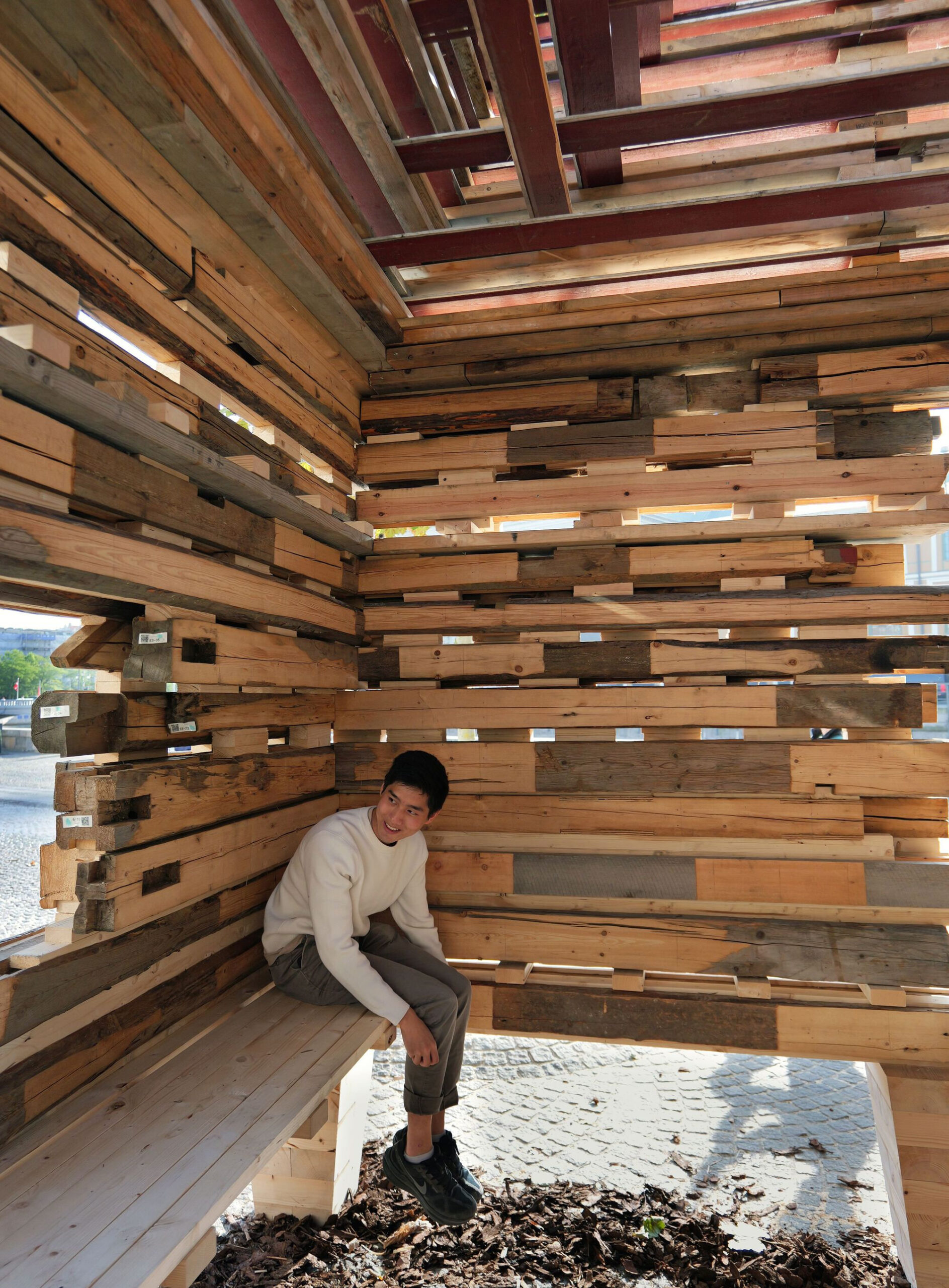 Sash Scott, Co-Founder, THISS Studio, said: ‘It is incredible to be a part of the first Copenhagen Architecture Biennial with Barn Again, working with Tom to bring an important idea of deceleration to life within the programme. Slowing down may be the wider theme of the festival, but it’s a practice we should all remember; to design and live with intention is surely a good path to a more sustainable and connected world.’ Tom Svilans, architect, said: ‘Original Norwegian barn timbers, with their integral wood joints and dowels, embody slow, considered craftsmanship. In Barn Again, tradition is overlaid with delicate modern detailing, respecting and extending the timber’s story. It is wonderful to see this on the international stage.