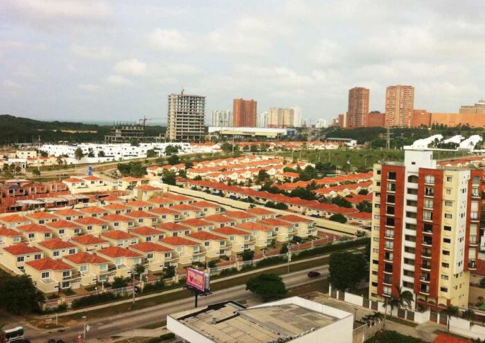 In an area with a chaotic fabric of the usual kind of South American intense, teaming urban wear-and-tear, weathering, decay mixed with city efforts to fix, clean-up, and modernize pockets of the neighborhood for the usual attempts of urban improvement, Rodelo showed a compact impression of a typical contemporary, urban entropy. The vital entropy of this part of the city of Barranquilla between the usual life-forces of anabolism and catabolism shows a typical world-wide dynamic of entropic flux between poor and rich people and poor and rich architecture and poor and rich planning. We rarely see it this way but Rodelo brings up the critical shift of urban measurement and evaluation directly across judgmental yardsticks so that the idea of poor and rich is not just a mere split between people without money and people with money but finds and offers a sociological, economic, physical, spatial and urban semiotic shift back-and-forth across this divide as its own kind of integrating, binding and energetic generative zipper.