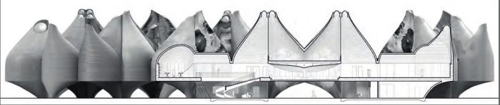 On the other hand, the design by Young and Ayata displays the expressive nature of Bauhaus art by creating volumetric spaces called ‘vessels’ that will act as a ‘container’ to preserve and display thousands of creations that took place in the school over the years. They have also focused on use of color as well as material while trying to be a focal point in the neighborhood and thus acting as a contrast to the architecture around it.