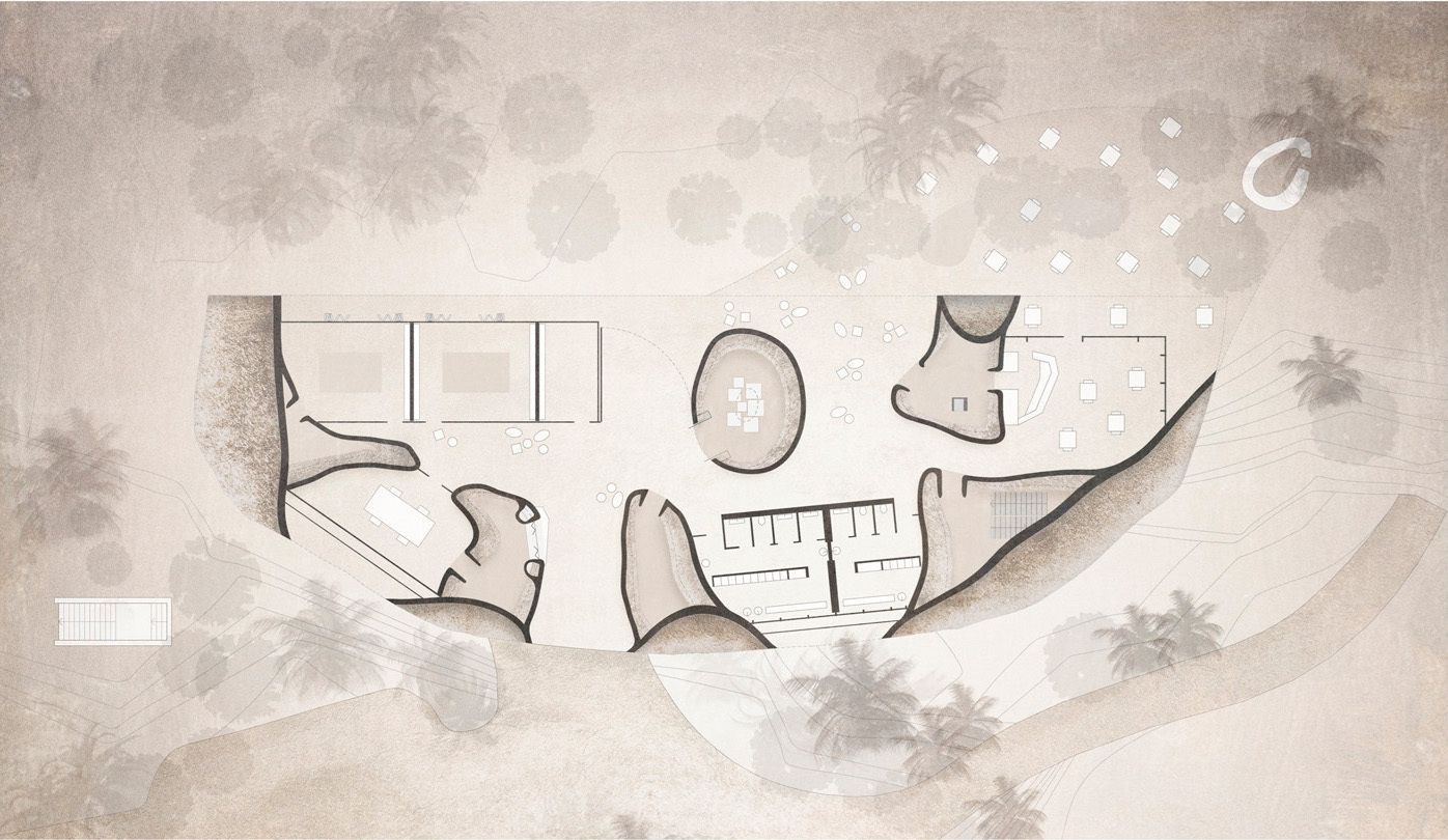 The club-house’s construction was only made possible via the knowledge exchange program between the European office of Oppenheim Architecture and local workforce. Shotcrete pouring techniques were taught to workers in the first phases so that they could take ownership of the construction and gain specialized skills, plus a local artist was also brought in to give the building a more traditional appearance by applying a traditional pigmentation technique to the interior surfaces making its look stays true to its context and inspiration.