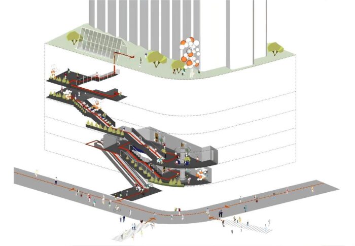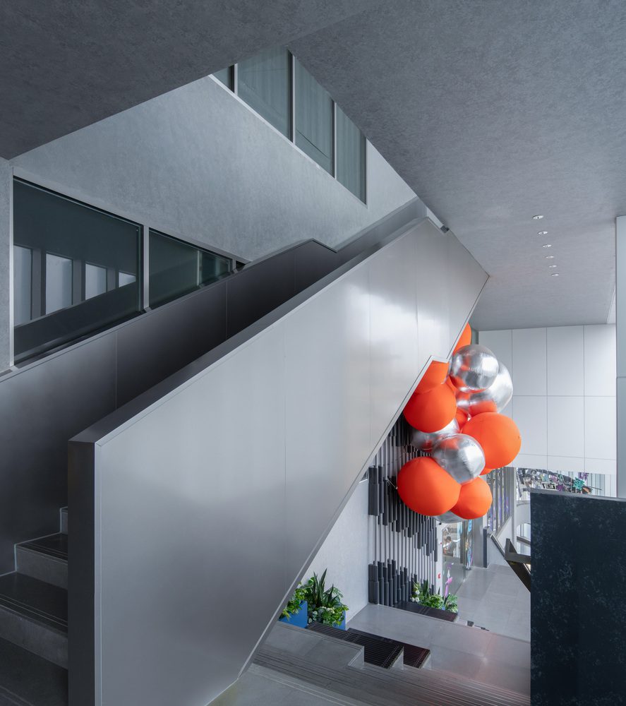 The building currently has 30 floors, with a 6-story podium that includes commercial spaces and a hotel. The renovation retained the architectural features and local cultural elements while reconstructing the internal space and flow, creating a vertical and multi-level outdoor space with a “stairway” design rich in Lingnan characteristics. This formed a “multi-ground level” commercial area that combined trendy retails, experiential scenes, art exhibitions of new lifestyles, and social activities into a new commercial model of “commerce+art+scenes”, continuing Guangzhou’s trendy cultural heritage and creating a hub for the youth to gather and explore new lifestyles.