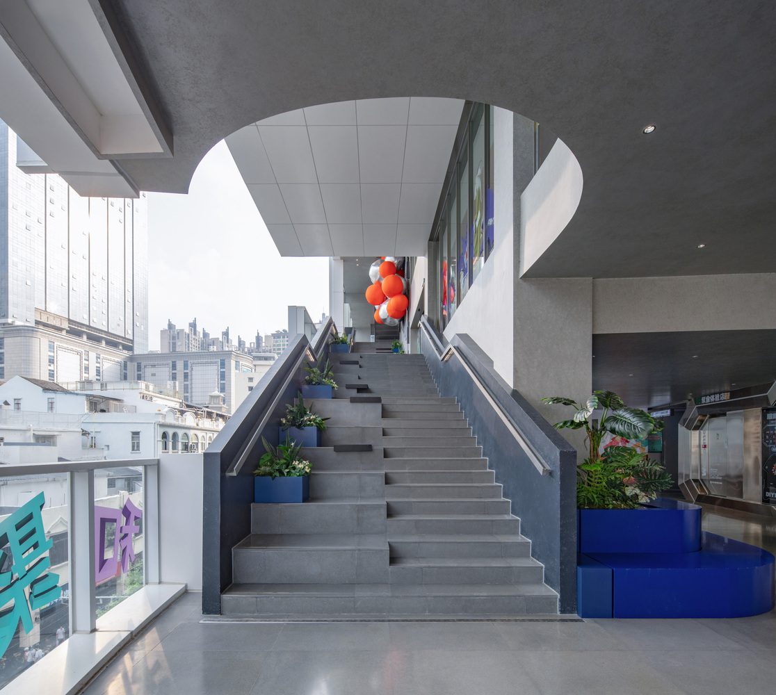The façade’s arcade stairs brought the spread-out arcade culture and Lingnan charm of Beijing Road into a vertical and multi-level commercial space, resulting in a distinctive visual design. Due to the building’s address being No. 182, the “182 Arcade Stairway” was born. This arcade stairway can be converted to suit different activity themes, transforming into a stairway art gallery, a stairway living room, or a stairway garden as needed.