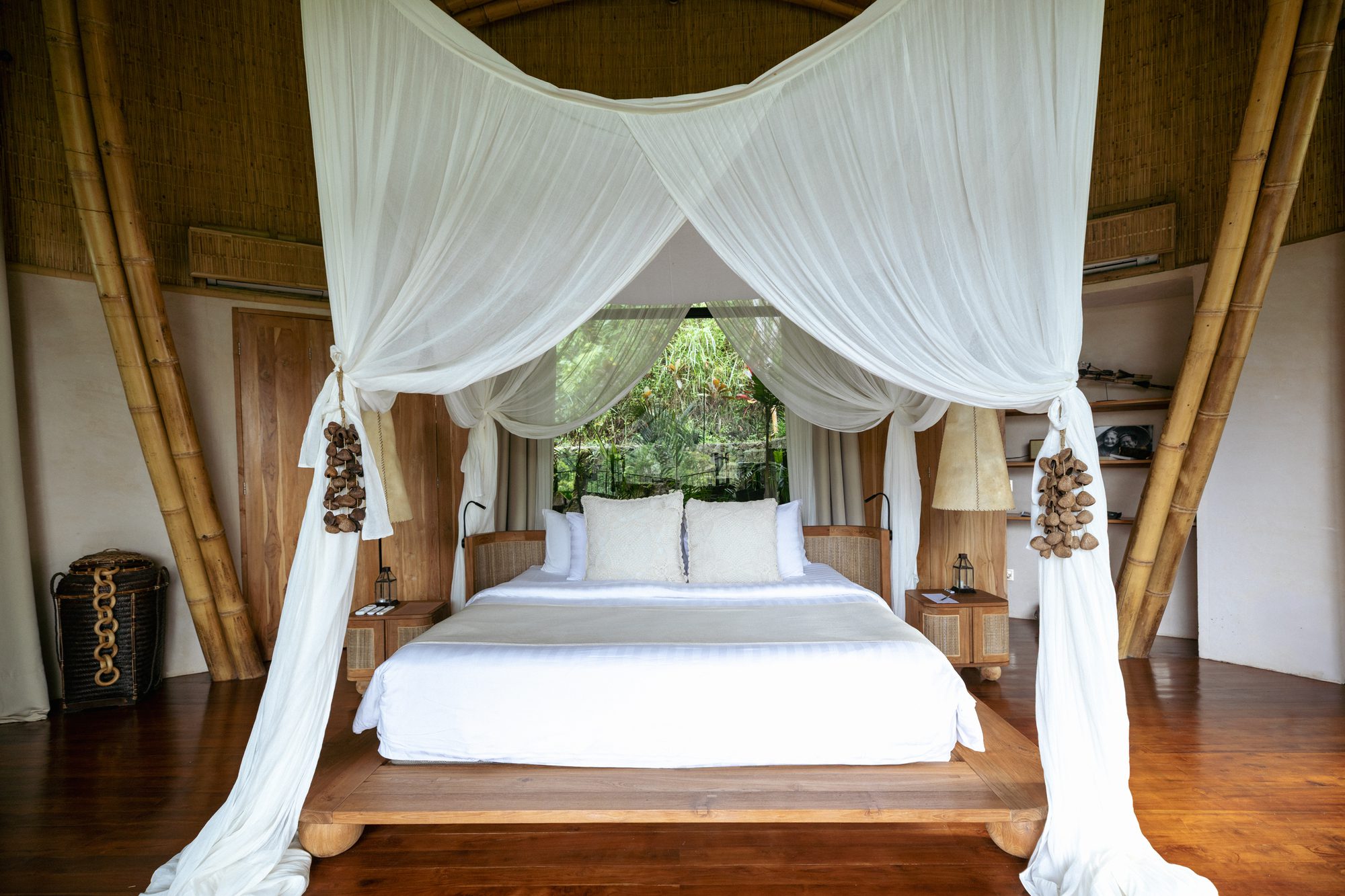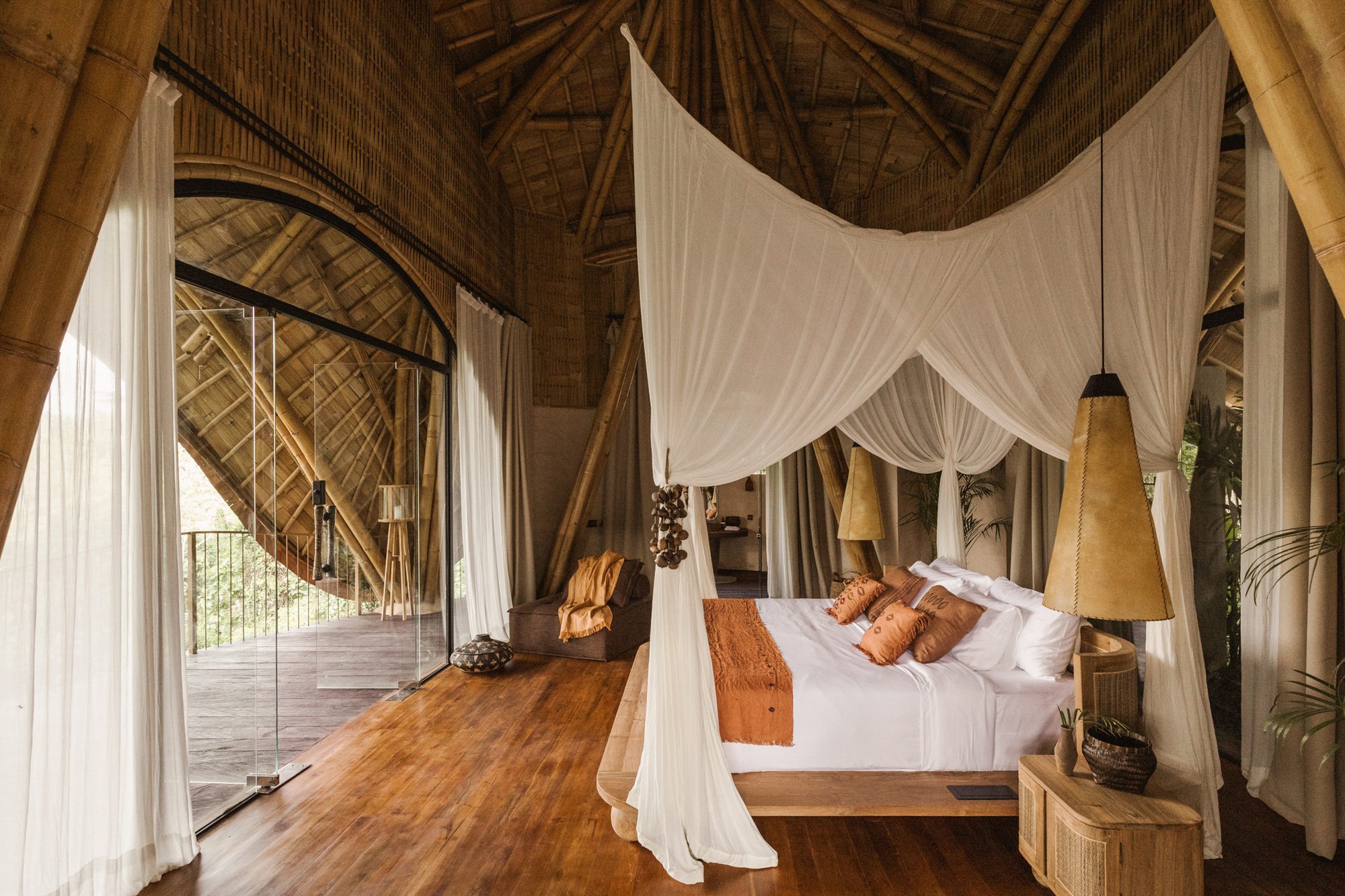 Inside, the atmosphere is peaceful and rejuvenating. Sunlight filters through bamboo weaving, breezes move across the interiors, and views open toward the valley and jungle. Dome Villa offers both retreat and renewal, a place where architecture, landscape, and craft converge to nurture body, spirit, and environment.