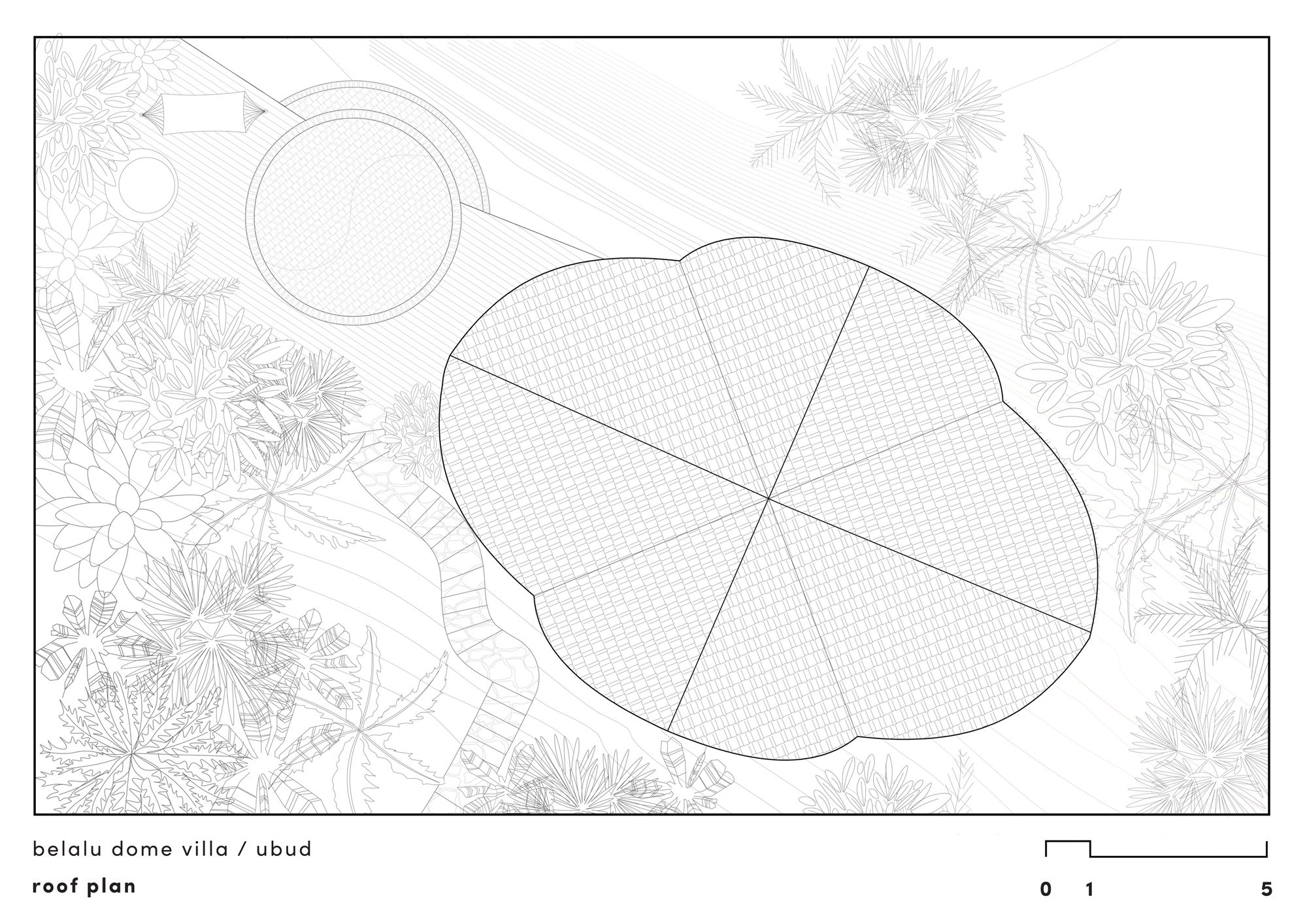 A material palette of bamboo, limestone, slate, and ulin wood roots the villa in natural construction, while woven surfaces and wide openings invite daylight and fresh air to circulate freely. The dominant roof form provides shade and comfort while embodying balance, openness, and belonging in the tropical context.