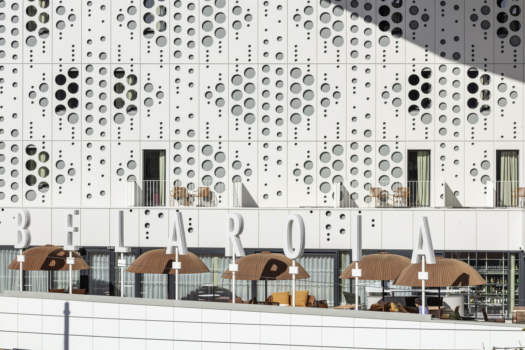 ‘Belaroïa’ means jewels in langue d’oc, the old language of the area of Montpellier, in the south of France. It is a mixed-use program with a 3* campanile hotel, a 4* golden tulip, 12 luxury apartments, a restaurant, a wellness center, and parking. The site is right opposite Montpellier’s central Gare Saint Roch train station, and the BELAROIA is the first building you see as you come out of the station. The north terraces of the station overlook the project.