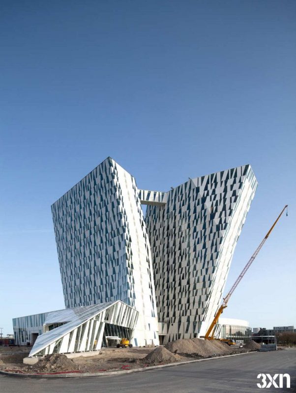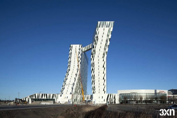 Designed by 3XN, Bella Sky Hotel is a new distinct landmark on Ørestad, Copenhagen’s Newest Neighbourhood, with the two towers reaching up 76,5 meters, and leaning out at a staggering 15 degrees in each direction. The result is a sculptural building, unique in Copenhagen.