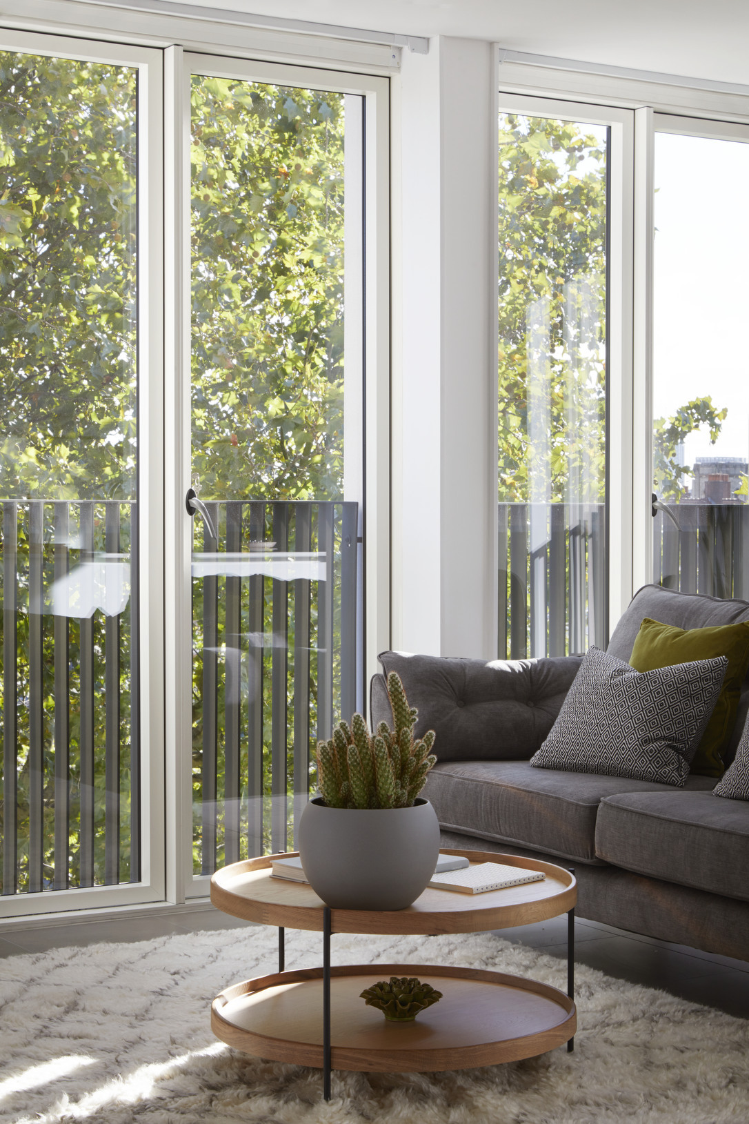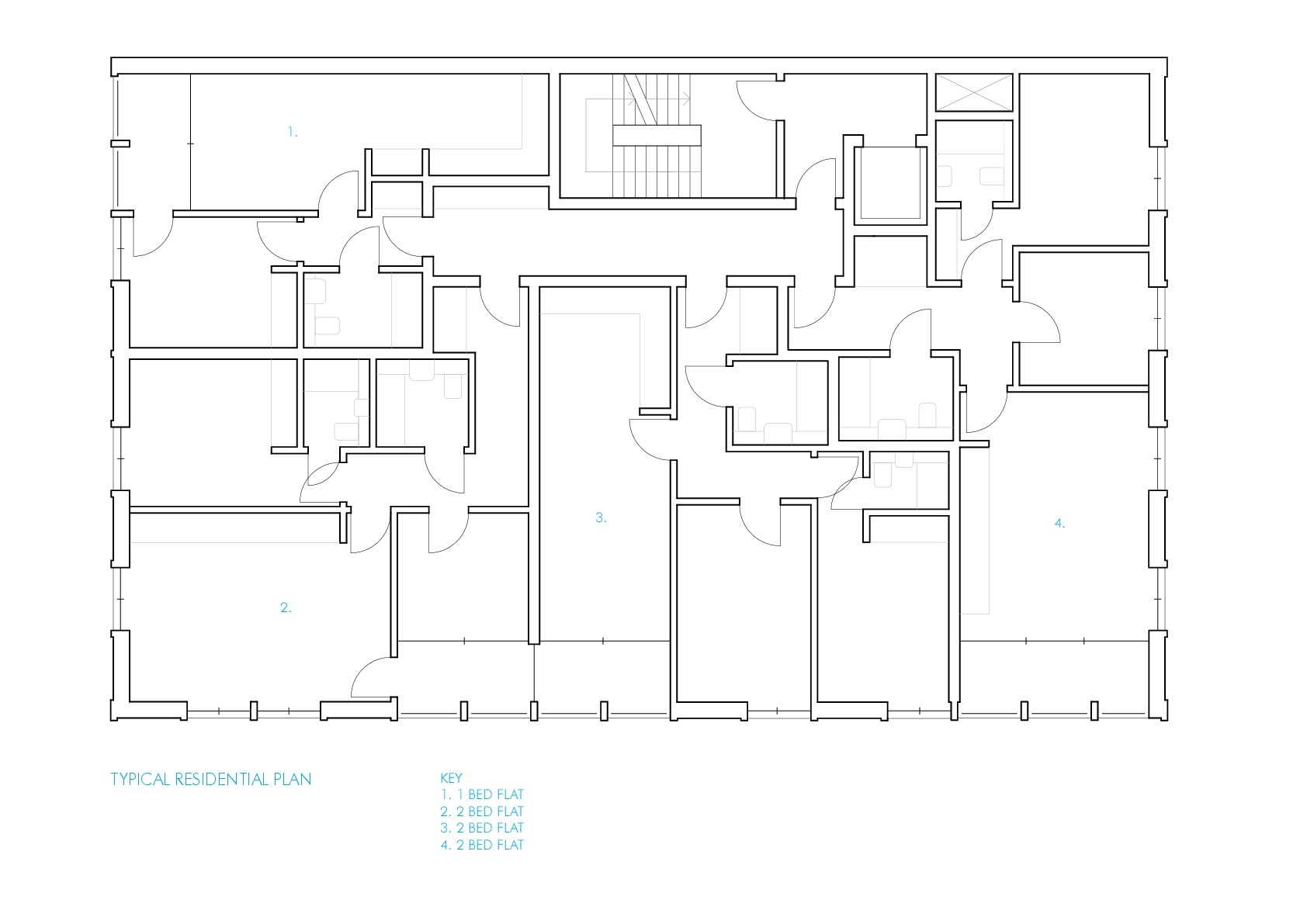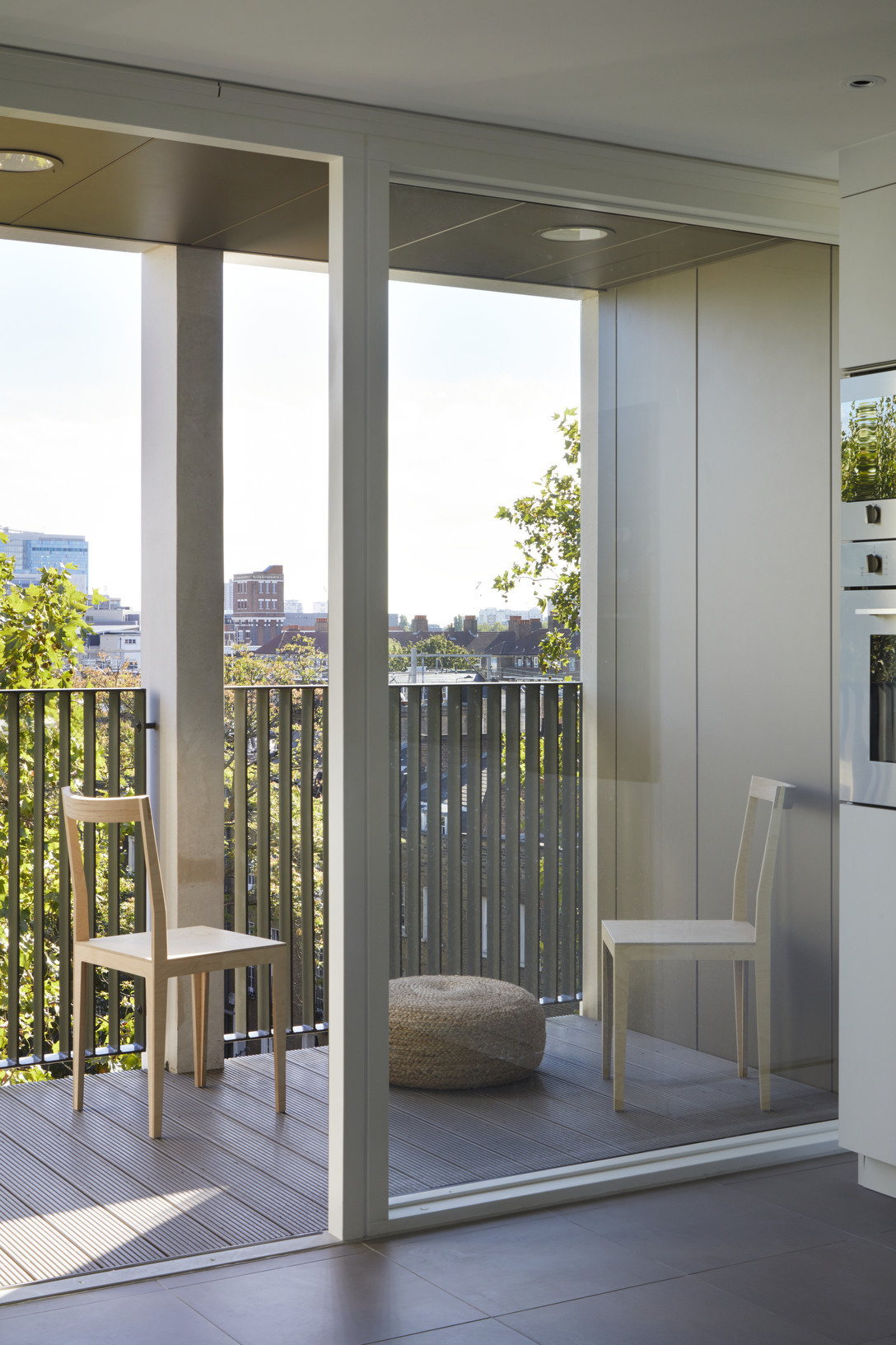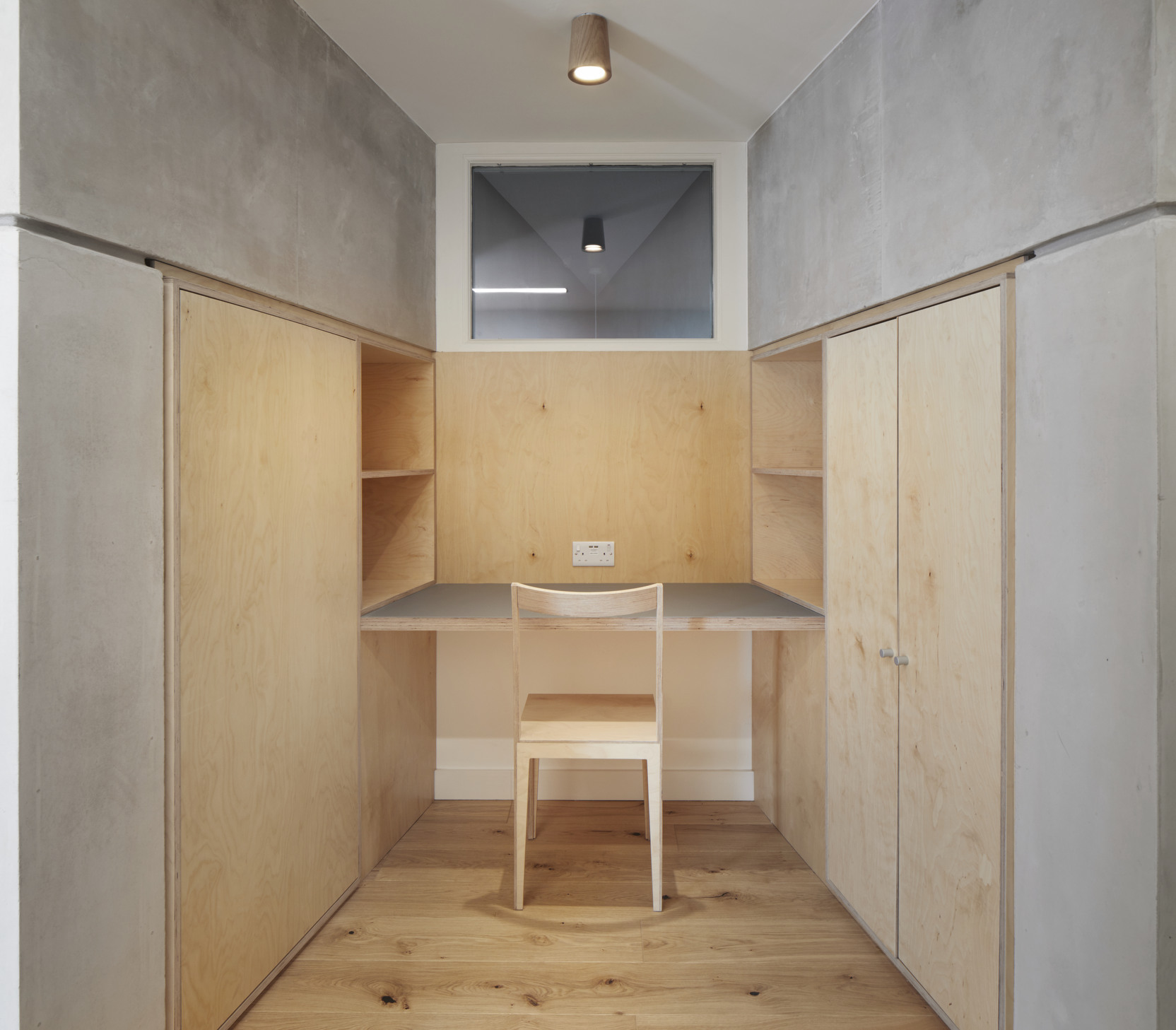 Many of the 14 flats (which also include a vicarge) on the upper levels are dual aspect, with inset balconies featuring views out over the historic local parks to the City beyond. Each residence has been designed with very high acoustic and thermal properties to shield the occupants from the noise of busy life on the streets below and the overground trains that run parallel to the building.