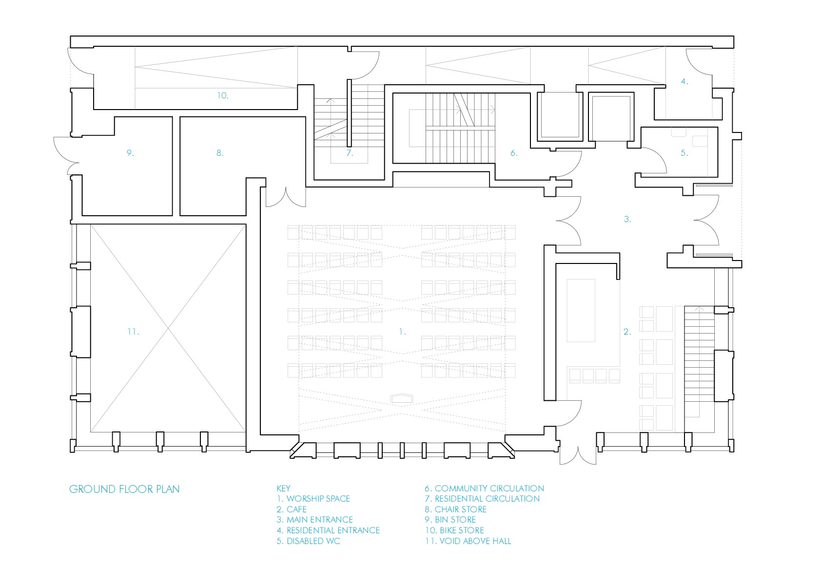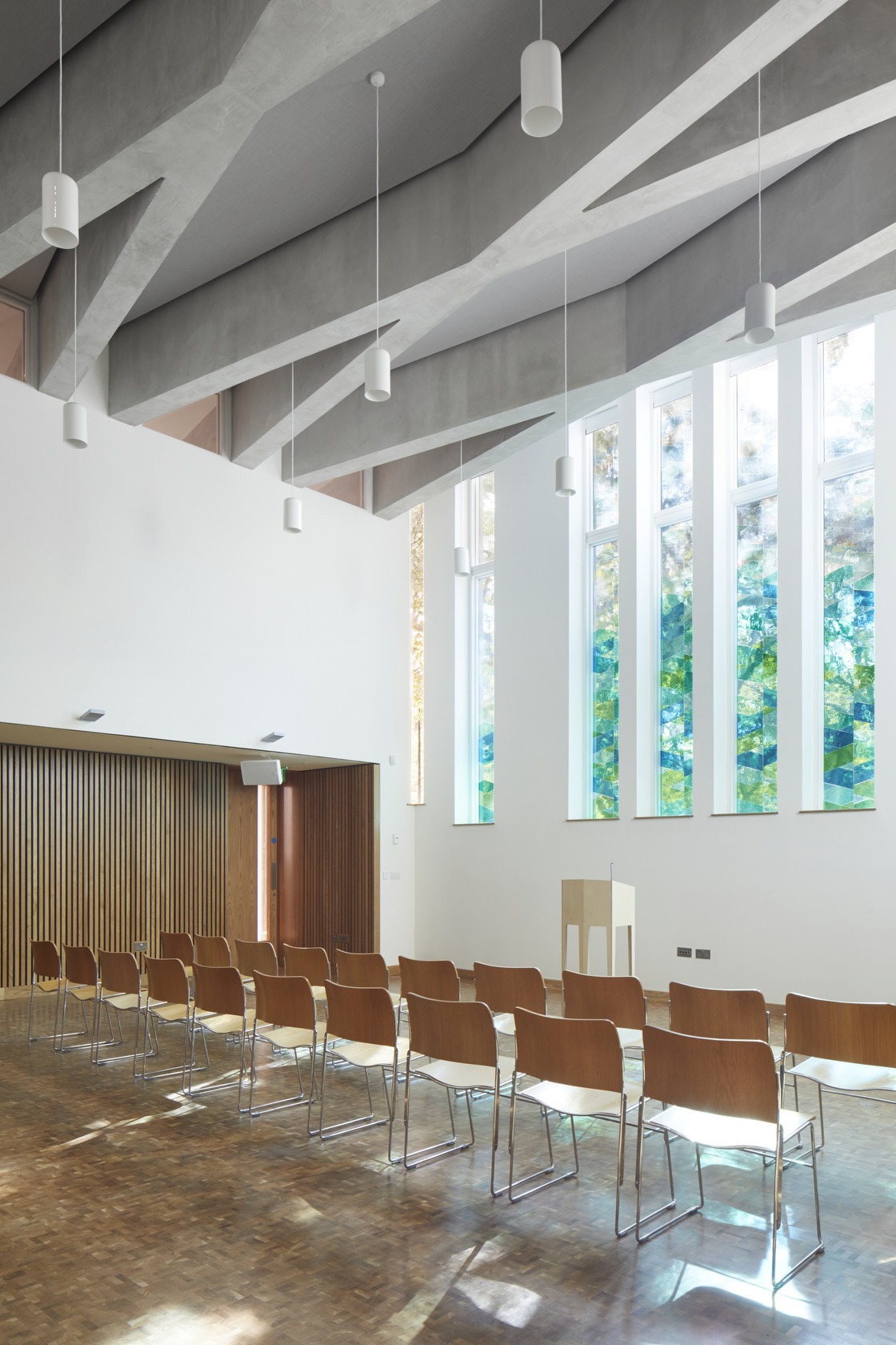 The main community functions of the building are located underneath the ground floor café and another double-height space brings natural daylight into the areas used for local engagement projects. The lower level will play host to a number of important activities for the area, including a food bank, night shelter, after school clubs, youth groups and Christian-Muslim interfaith projects.