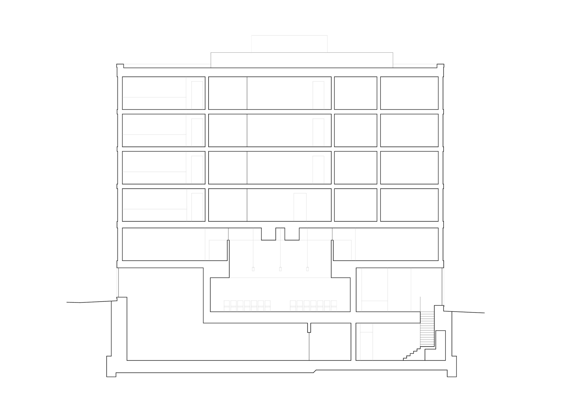 Structurally, Bethnal Green Mission Church was constructed in insitu concrete up to the second storey with Cross Laminated Timber panels above. This material was selected for its environmental performance, as well as the efficiency and speed of the build and the ability to meet the stringent height restrictions imposed in planning. This was later clad in precast concrete panels and site-laid brickwork, with a hammered concrete cross discreetly located on the eastern elevation.