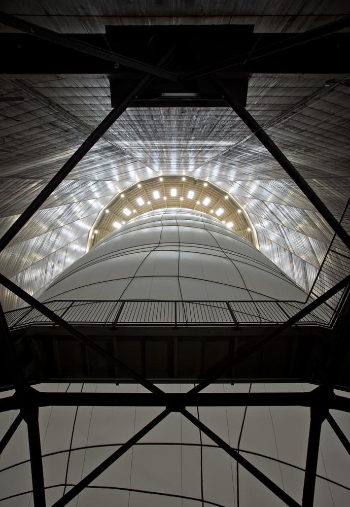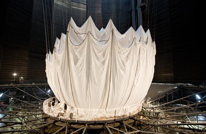 Big Air Package, The Gasometer Oberhausen in Germany is known for holding the record as the largest disc-type gas holder in Europe. But since this former gas tank was transformed into an exhibition hall in the 1990s, it is famous for the grand works of art that reside in it; most recently: the Big Air Package. Designed and created by artist Christo, one half of the Christo-Jeanne-Claude couple, the Big Air Package is a massive inflated balloon constructed inside the Gasometer Oberhausen. It is the largest inflated envelope suspended without a skeleton and rumored to be the largest indoor sculpture in history.
