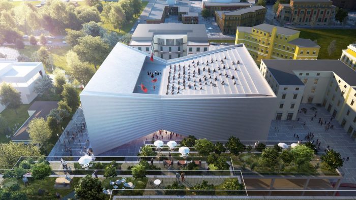 In an official statement, Tirana’s mayor Erion Veliaj says that the bow tie National theatre will act as a “bow tie that ties together artists, dreamers and all talented people with the aspirations of a city changing to fifth gear in its yearning for constant change and place-making.”