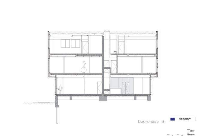 In the spring of 2004, Paul de Ruiter Architects was commissioned to design a theatre in the Southeast district of Amsterdam. The Bijlmer park Theatre was to be a multifunctional centre for four regular tenants: Circus Elleboog, Krater Theatre, the Youth Theatre School and the Theatre Workplace.