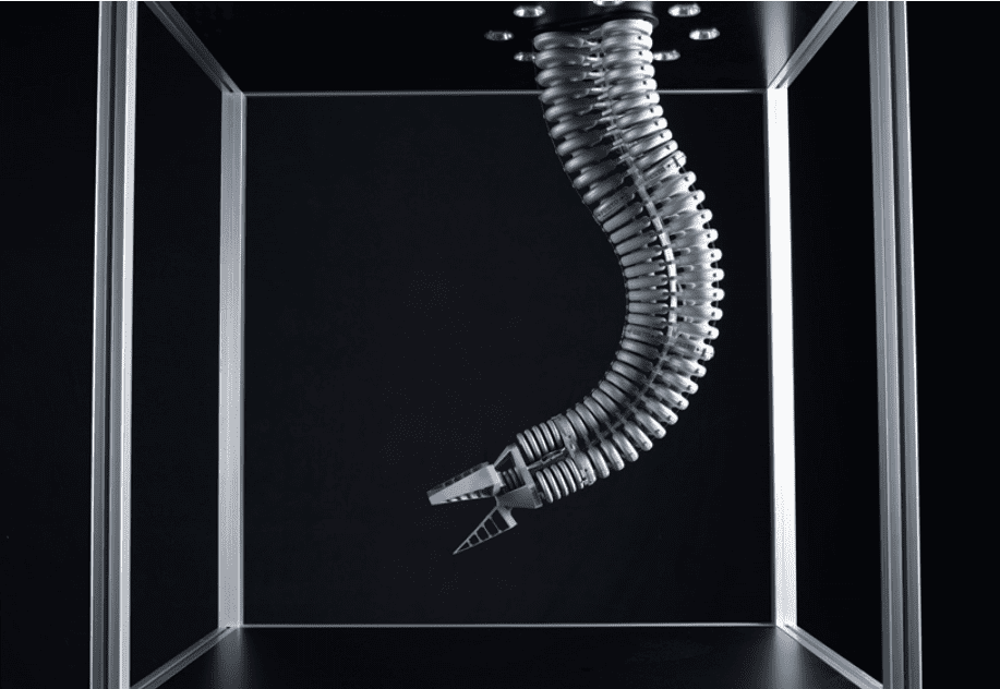 3d printed parts are what this bionic arm is made up of. There are three elements that the handling system consists of for spatial movement. It is one system with a hand axis that has a ball joint and a gripper with adaptive fingers.