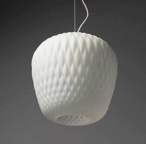Starting with a rough prototype, a technical process was used to achieve various forms. A 3D CAD software was used to manage the inflation of each bubble in order to reach the best control of how the light would be refracted at diverse angles.