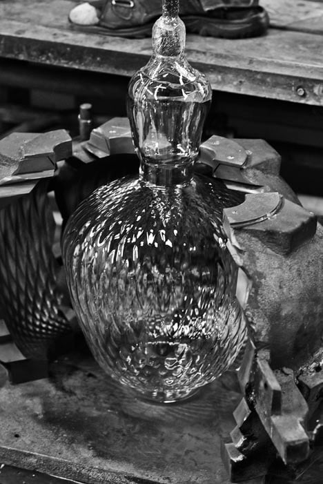 A metal mould was used to create the pendant.Two different variations were blown: sandblasted and transparent.