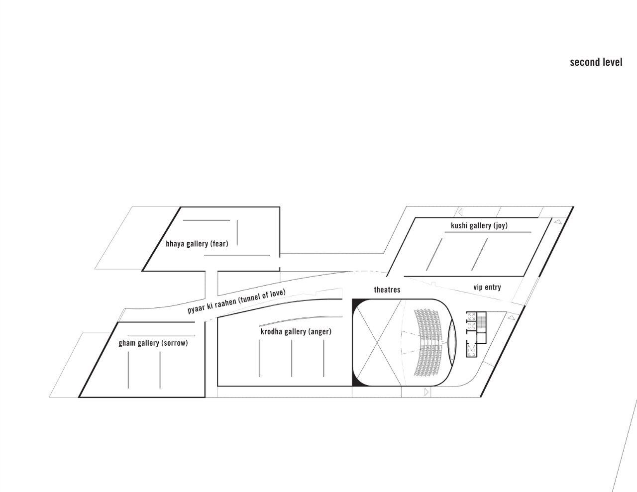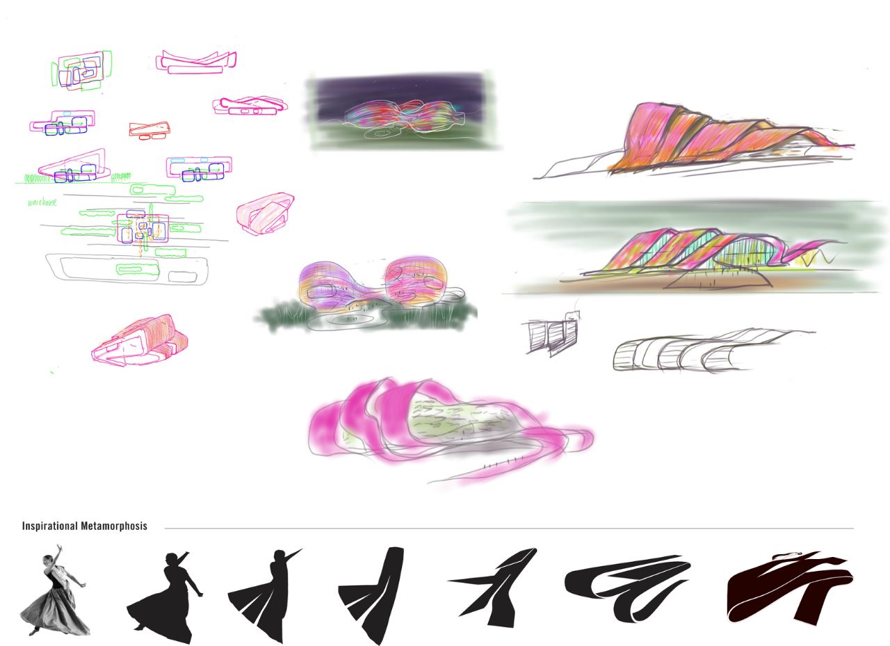 The design for the Bollywood Museum harnesses the power of this especially dynamic form of cinema by responding to its layered expressions of emotions. This fundamental aspect of Bollywood cinema inspires multiple facets of the design, from its undulating iconic form to the multiple waves of spatial experience that cascade across the site. Envisioning the program as a series of scenarios generated of a rich pallet of experiences and spaces. Central to this exercise was submerging the museumgoer in an environment where they could be the star: guests enter the museum via a red carpet arrival, and orientation occurs in theaters designed for gala events. Some galleries are treated as working sets for a ‘behind the scenes’ feel, while others use interactive technology to immerse patrons in worlds only seen on screen.