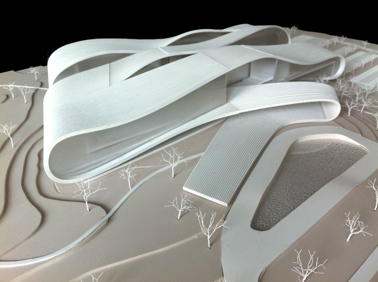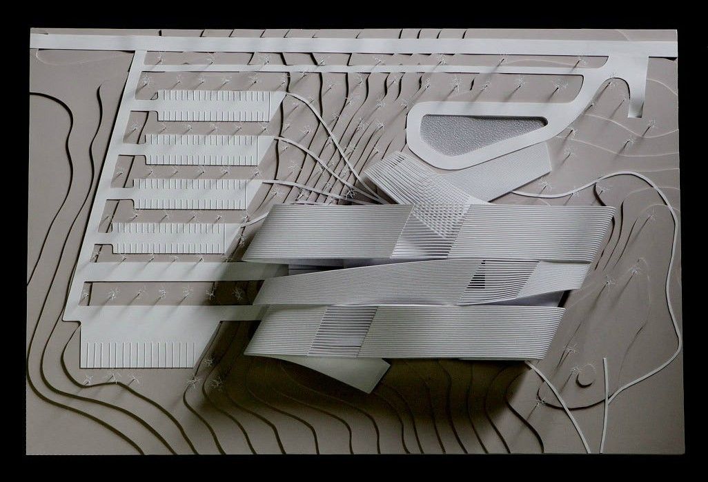 Situated in Film City amidst working back-lots, the museum participates in the industry that supports it. Inside, multiple small theaters combine to support opening night screenings and major awards ceremonies. Conceived as an all-day affair, landscape and building merge to support the variety of experiences. Families having traveled from afar can picnic amongst set reproductions and enjoy screenings in the movie garden. The concept of movement and flow carries thru to structure. Beneath the complex flowing form lies a rational structure that enables flexibility of programming. Warehouse-like volumes accommodate exhibits ranging from actual sets to intimate encounters with memorabilia. Fittingly, the Bollywood Museum is not a box containing artifacts, but a living space celebrating and supporting a living culture.