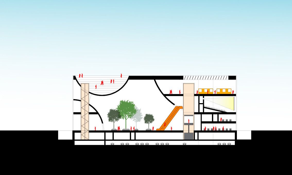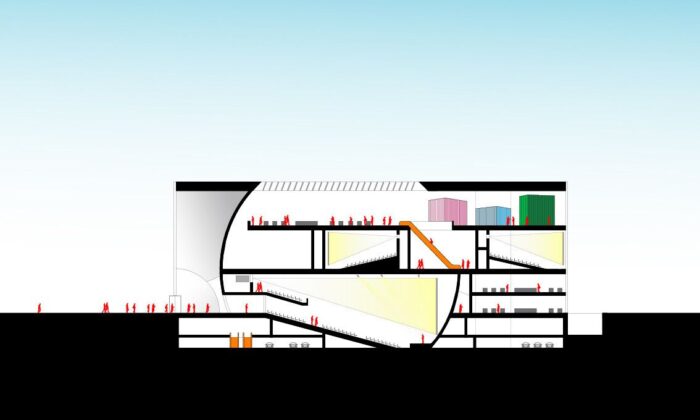 Envisioned as part of a new media park slated for construction in the city, the building’s design is playful and contemporary, offering visitors a “series of unique spatial experiences.”