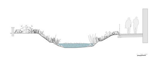The river became the central organizing device to make sense of the complex site and this accumulation of facilities. The river has been widened and its banks opened out and planted in order to transform it into a route that draws visitors through the site to a newly defined courtyard at its center, surrounded by historic buildings. To make the water visible and valuable once more the river has taken on more than twice its original width and its banks reshaped with planted foreshores. The original project brief included a provision of a separate visitor center. However, the design team believed this not to be necessary, preferring to allow the public a more authentic experience by getting closer to the distillation process and seeing the sculptural copper gin stills in use.