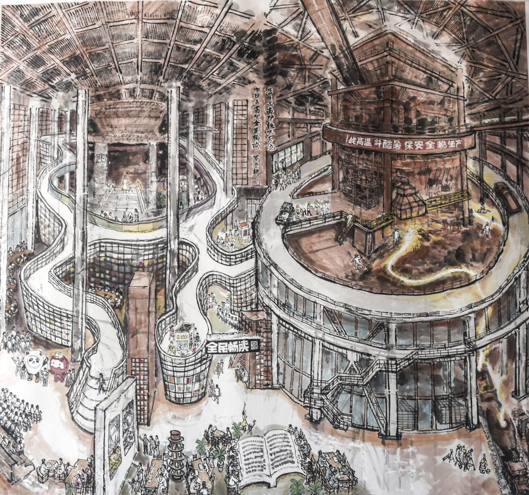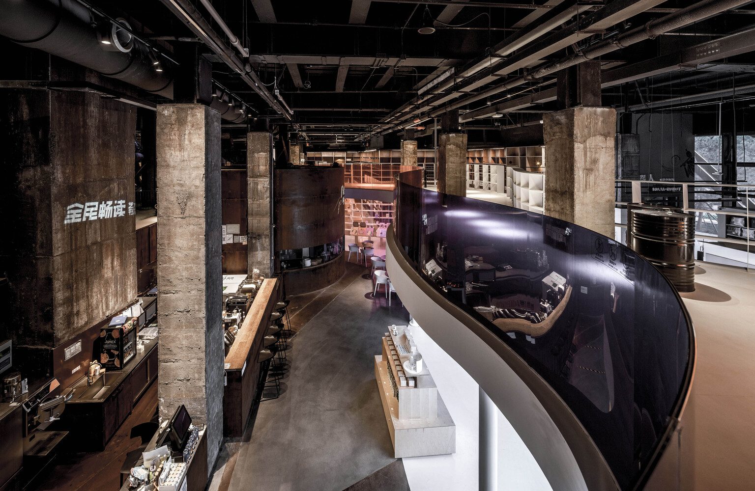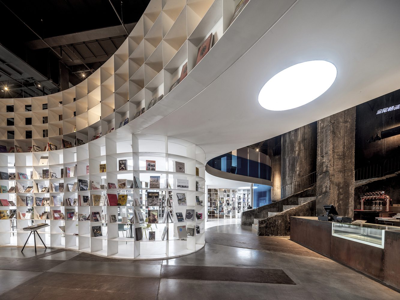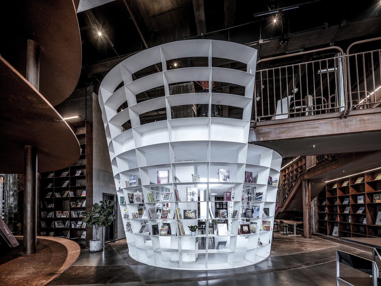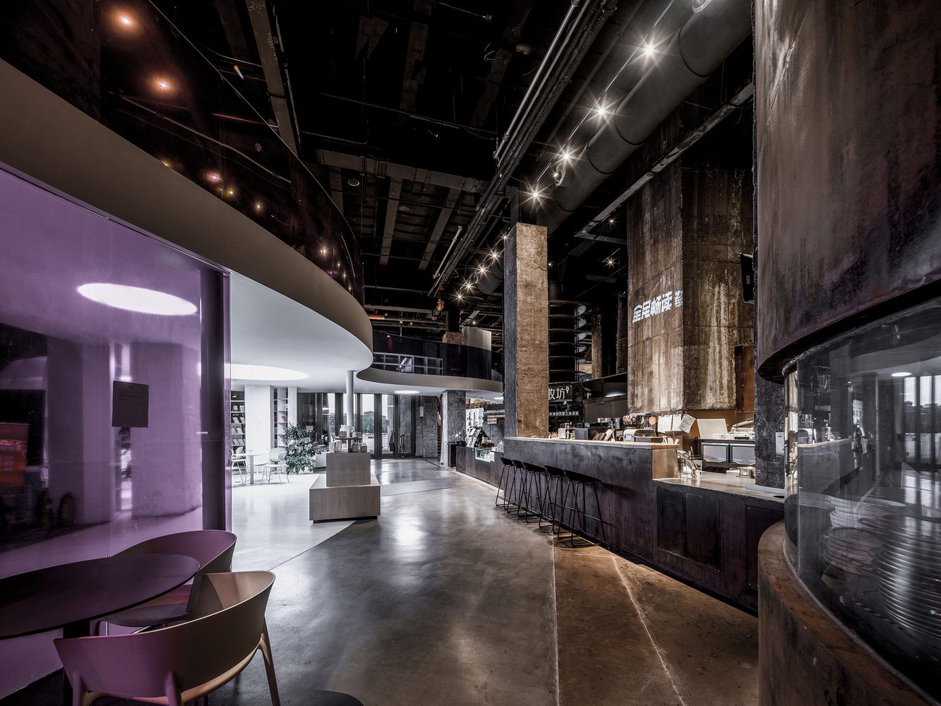 The third ring of the floating device and the outermost ring near the facade of the fourth ring reading activity area are served Spaces. The reading activity area is a flexible area inside the blast furnace. It can be used as a corner for reading and communication. It can also be used as a space for activities, lectures and conferences, equipped with the functions of coffee and simple meals. It is a multi-scene space, covering 7 operating sections of books, art, exhibition, market, intelligence, life and bookstore business school.
