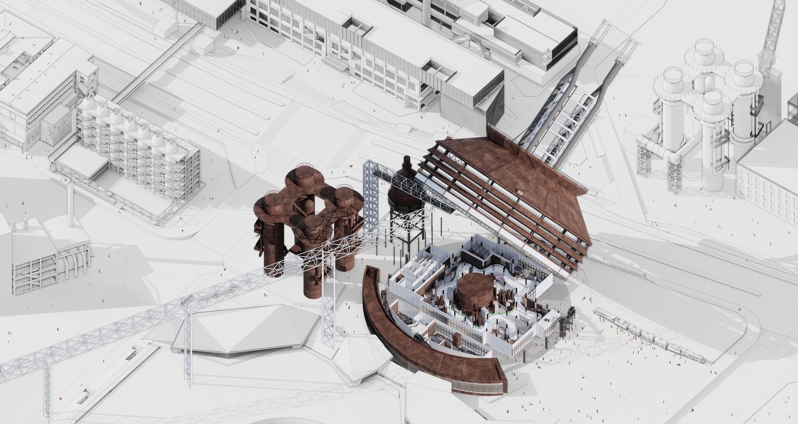The center of the circle of the three blast furnace is the core and spiritual fortress of the whole blast furnace. The symbolic and commemorative nature of the core is enhanced by the lighting designer, through the three-dimensional sense created by the red wall washing lamp, the light that is projected on the furnace body like a flame, and the details of some metal rods on the blast furnace, creating a warm atmosphere like the fireplace and giving the shuttle crowd a sense of worship. The relationship between the service and the served space is diffused outward from the center, and the second ring is the front end of the core as a service space, and also a visual and functional hub to strengthen the ritual sense and centripetal force of the core.