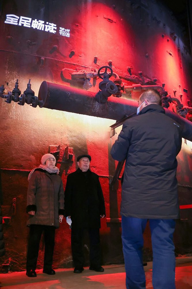 After the opening and operation of the three blast furnace bookstore, many Shougang employees came to visit, and a pair of old workers in their thirties returned to this blast furnace to review the scene of their previous work to see the new scene, filled with a happy smile.