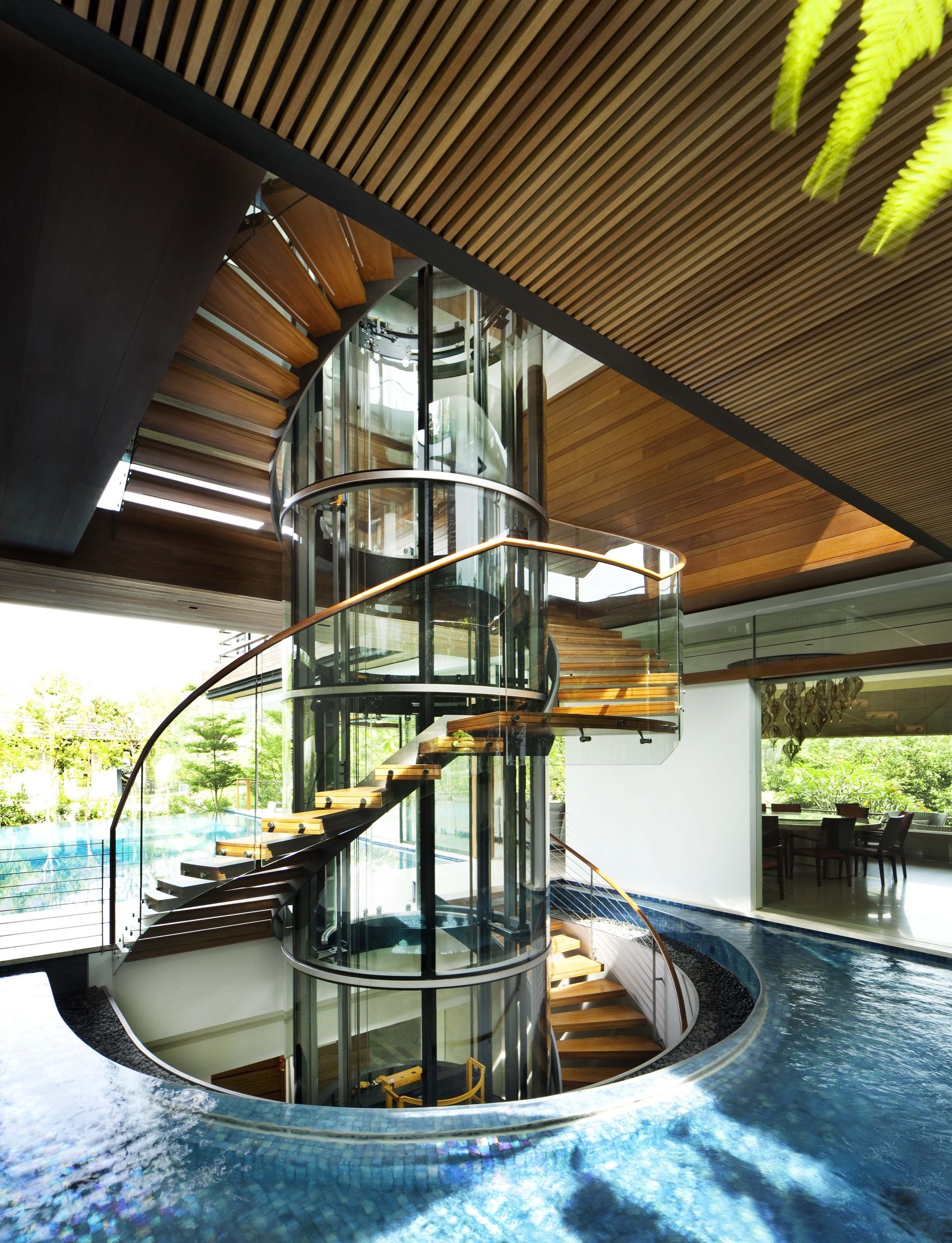 Feng Shui also played a major role in determining elements of the design, such as the round lift and angling of the front door. The site sits on the busy Cluny Road facing the entrance to the botanic gardens. From the road, the site sloped up steeply to a platform level many meters above road level. Vehicular access to the site was therefore difficult and was a major determinant on the design.