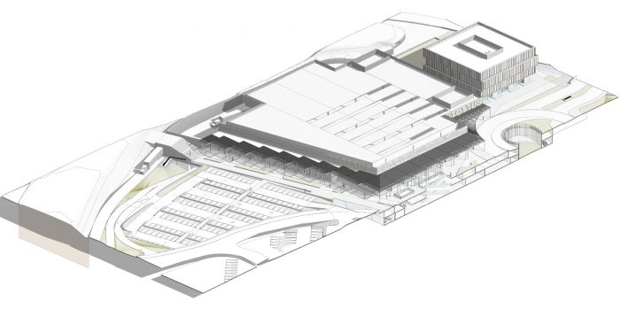 Designed by BL Arquitectos, Boulevard Piedra Roja is a Mixed-Use project located in the area of Laguna de Piedra Roja, Chicureo, Colina. The project considers a supermarket, stores and a 4-story office building.