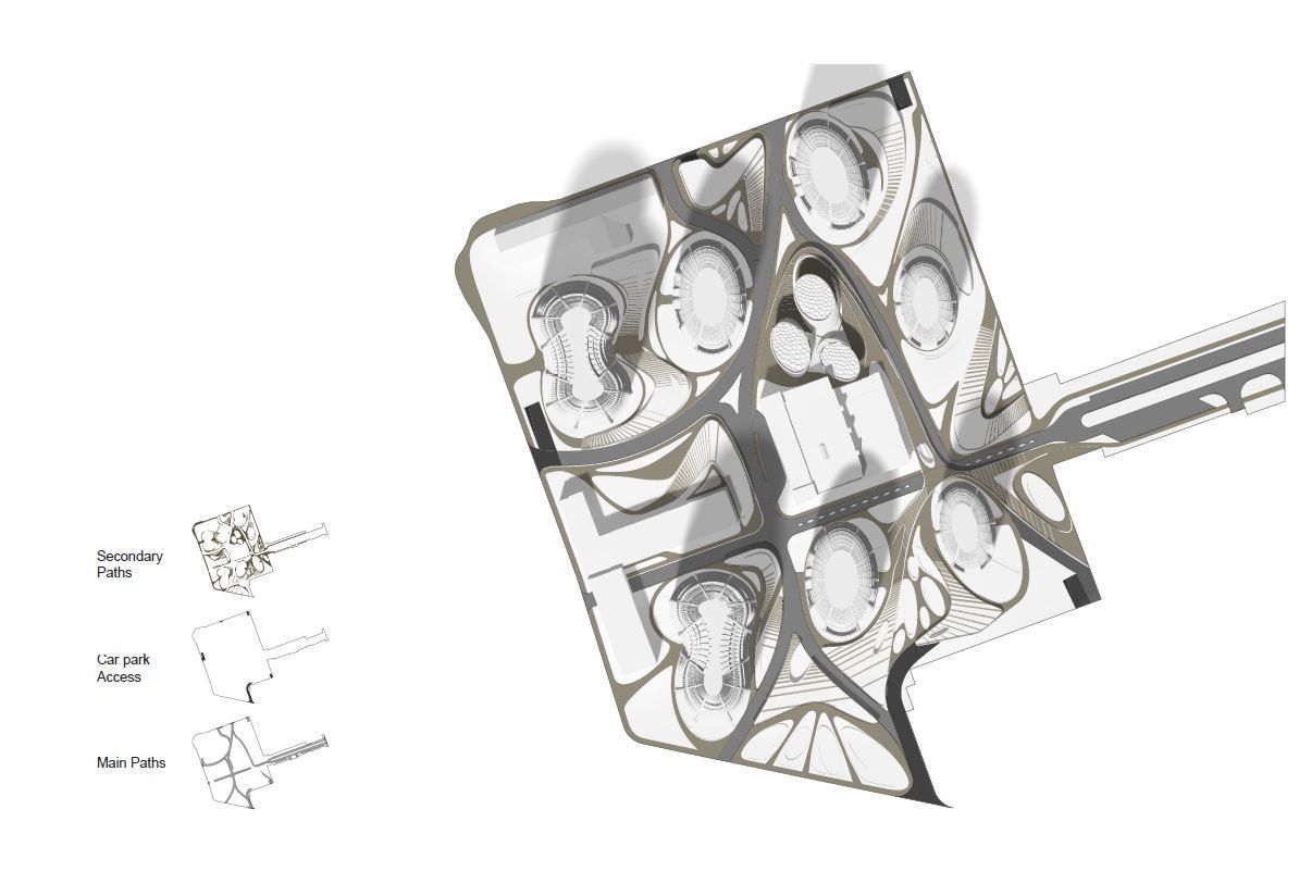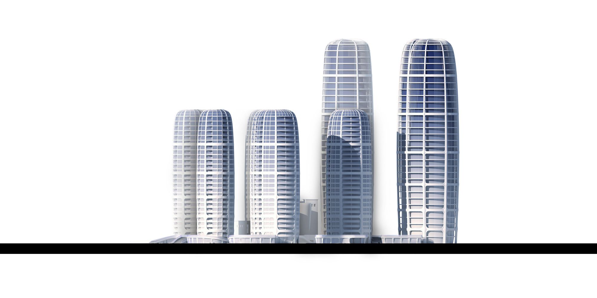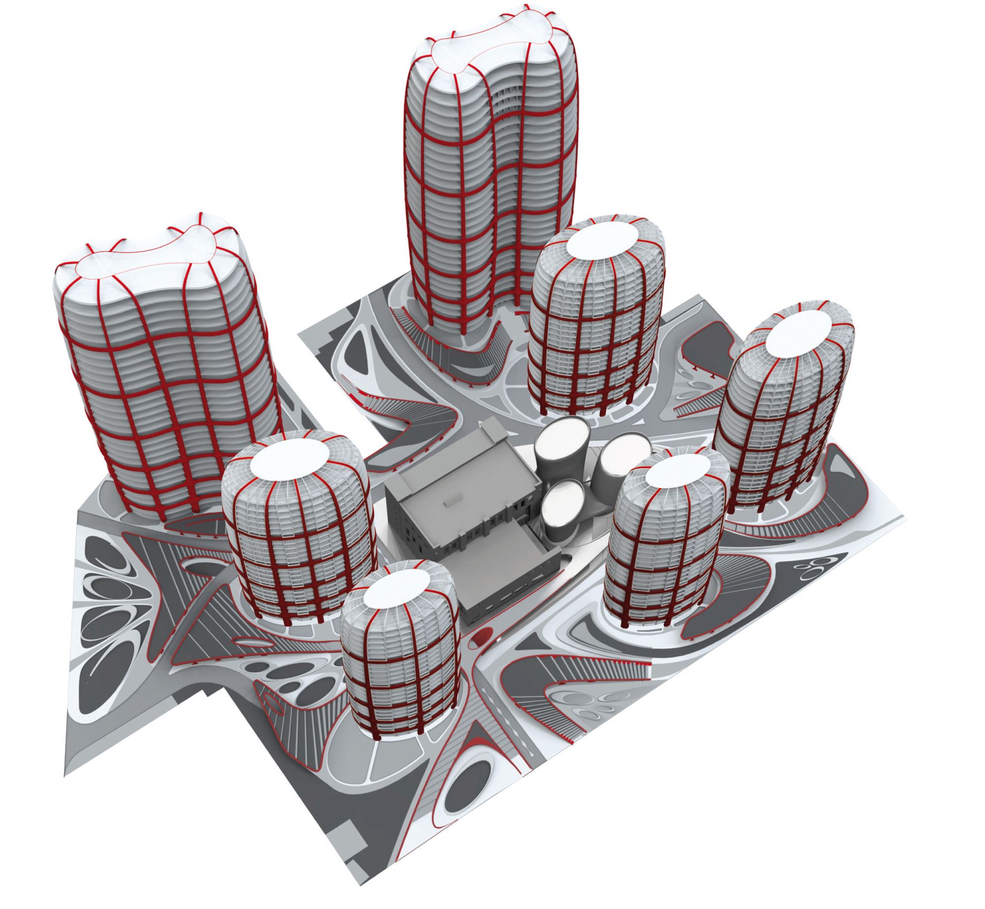 The design is based on a dynamic field strategy, which organizes the new city centre’s program along a gradient of circular and elliptical patterns. A fluid field emerges from the underlying matrix in the form of a series of larger tower extrusions towards the site’s perimeter and intermediate scale pavilion-like structures surrounding the cultural plaza- which is adjacent to an existing decommissioned power station.