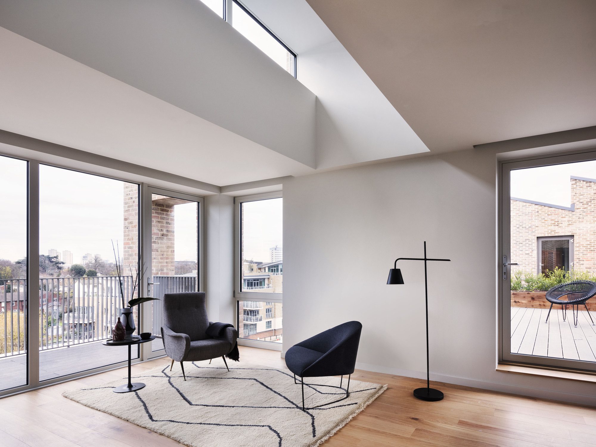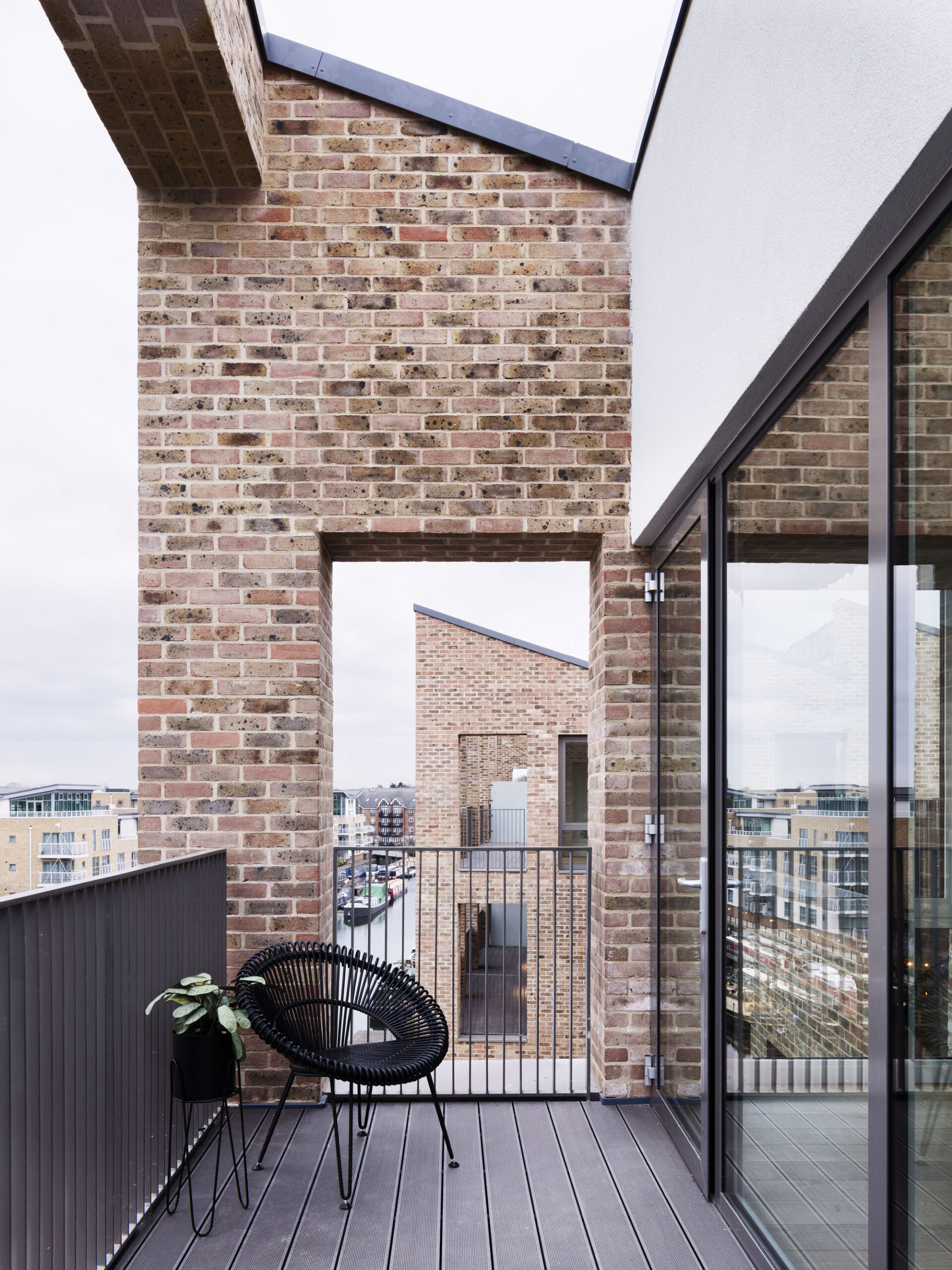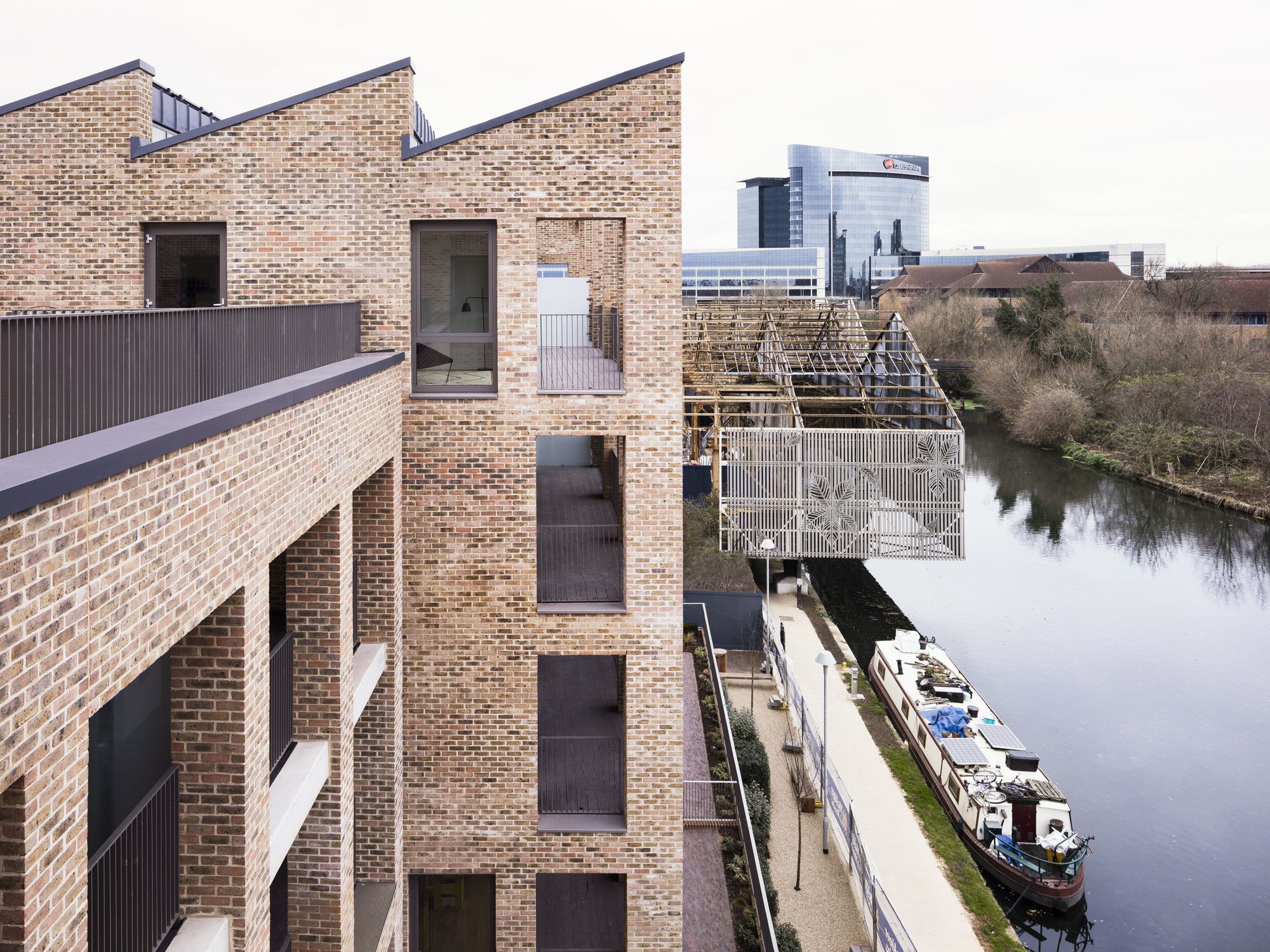 Penthouses embrace the distinctive roof, creating a rich living environment for top-floor residents with the profile providing light and lofty internal spaces. With financial viability improved through efficient use of space, the scheme provides a mixture of high-quality, lateral apartments, duplexes, penthouses and townhouses, of which 40% are designated for shared ownership. Flats are a dual aspect, each benefitting from generous balconies carefully orientated to maximize privacy, and to provide views either of the canals to the north, or of the city to the south.