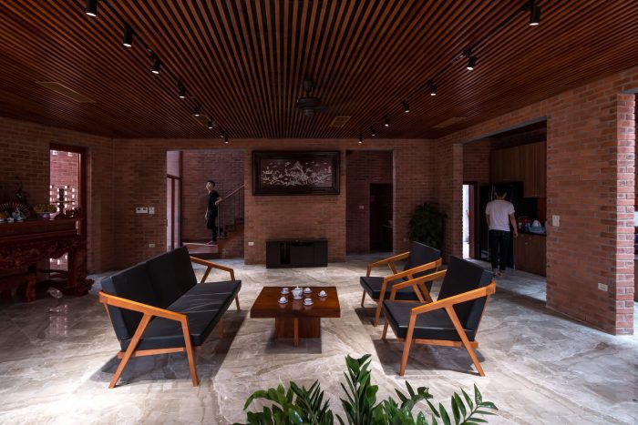 Brick House (Cave) reminds its users of emotional pieces of both strangeness and familiarity by offering them images of corners of a yard, expanses of the sky, strips of a garden, and parts of an alley… which is tentative to uses of space at different times in a typical tropical monsoon climate of the North of Vietnam. This, therefore, truly brings to users an interesting and enjoyable experience as they are accommodated in a sense of a large open space harmonized with a comfort of a safe shelter.