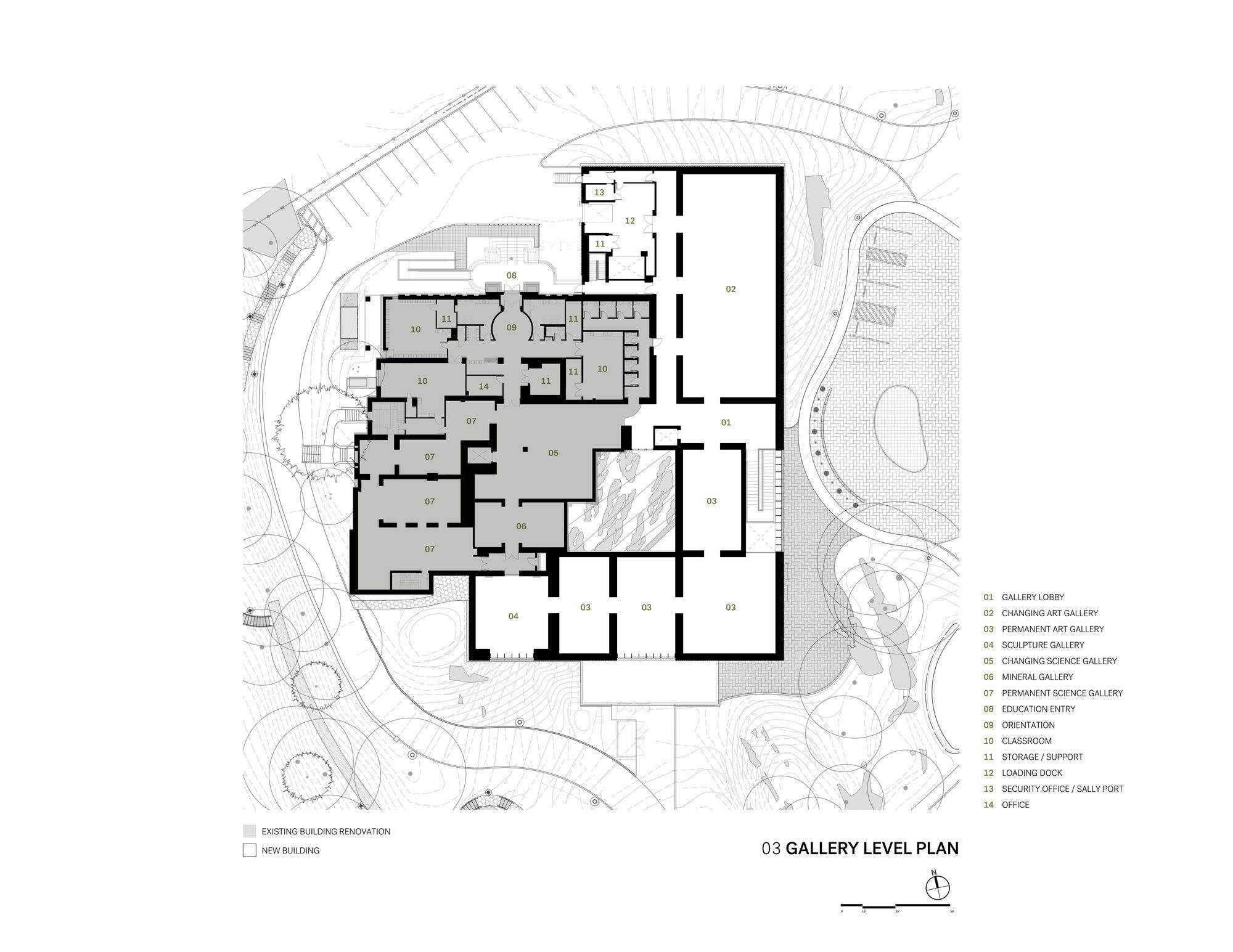 The finished project is a thorough refurbishment of the 32,500-square-foot existing museum building coupled with a 42,000-square-foot expansion. It offers more room for storing collections, enlarged gallery space for both permanent and temporary exhibitions, and a new public entrance lobby and lecture hall for the Museum. With three stories, the addition more than doubles the building’s current size and provides a warm, inviting visitor experience with ample galleries, open circulation, and enough exhibition, storage, and archival space to accommodate the Museum’s expanding collection.