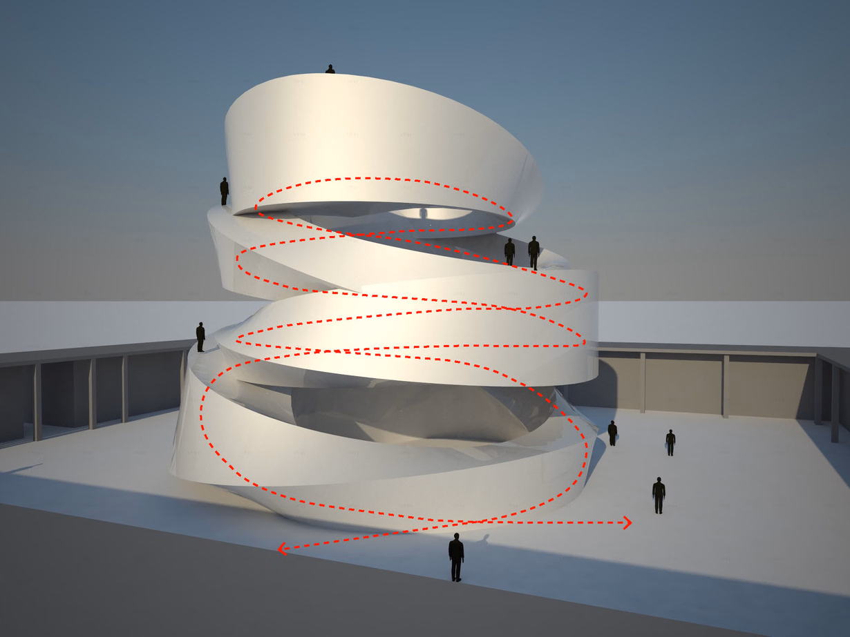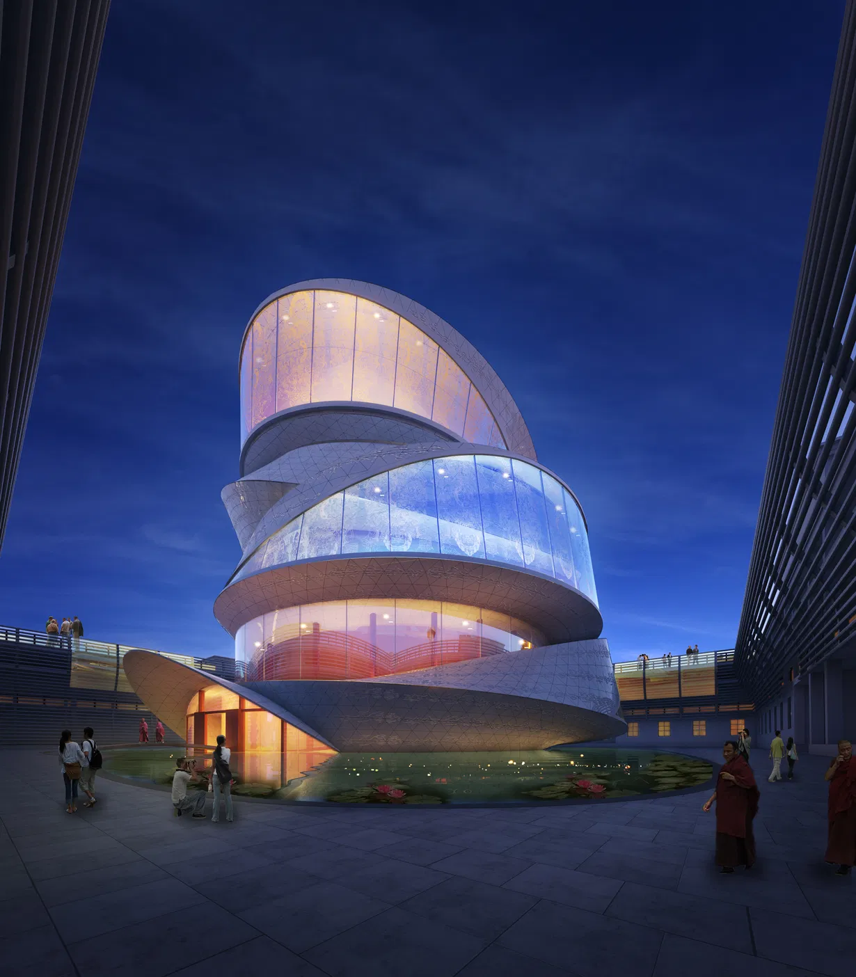 The  Buddhism temple , designed by Miliy Design, based on the concept of reincarnation and envisioned for a location in Chinese city of Taichang. The essence of Buddhism’s Sutra is so called “formlessness”. Based on this, the form searching of the architecture becomes the path from the beginning to the end, while the shape of the project allows the inner and outer surface to meet in the same point seamlessly. The prototype of Buddhism’s temple is from ancient time and based on ancient tectonic and space defining logic. With the aid of digital design and fabrication techniques, the solution will have different possibilities.