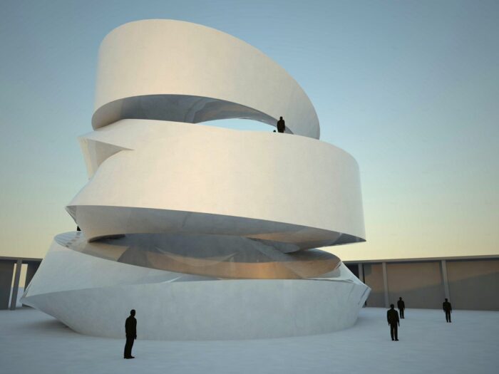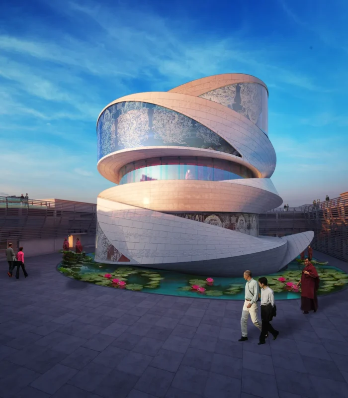 The  Buddhism temple , designed by Miliy Design, based on the concept of reincarnation and envisioned for a location in Chinese city of Taichang. The essence of Buddhism’s Sutra is so called “formlessness”. Based on this, the form searching of the architecture becomes the path from the beginning to the end, while the shape of the project allows the inner and outer surface to meet in the same point seamlessly. The prototype of Buddhism’s temple is from ancient time and based on ancient tectonic and space defining logic. With the aid of digital design and fabrication techniques, the solution will have different possibilities.