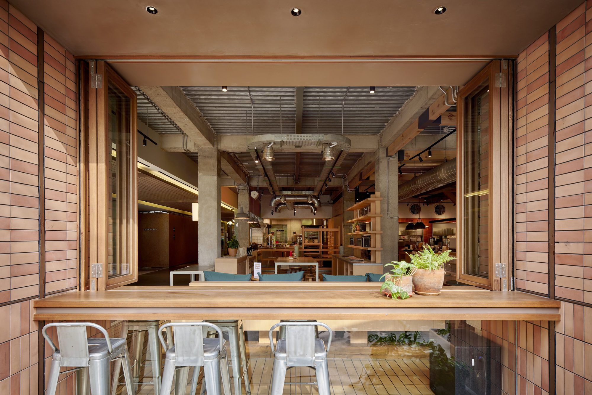 The existing building sits lower and 35 meters from the main road, prompting a design response that reconnects it to the street with a four-meter-wide bridge. More than a circulation path, this bridge is a lush promenade lined with tropical plants and gardens, creating an elevated, green arrival. Extending toward the main road, the project introduces outdoor seating shaded by a rooftop garden, enhancing comfort while reducing heat gain.