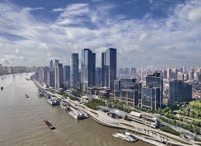 Influenced by the materiality and scale of the existing historic buildings along the Bund we have built a series of simple office, shopping and cultural buildings that combine high performance glazing systems with hand carved stone building frames. These structures in turn surround new public spaces and speak to the heritage of the historical Bund buildings.” The 420,000-square-metre development of eight buildings combines premium offices with a boutique hotel, a cultural centre and a wide variety of luxury retail spaces, all arranged around a landscaped public plaza.
