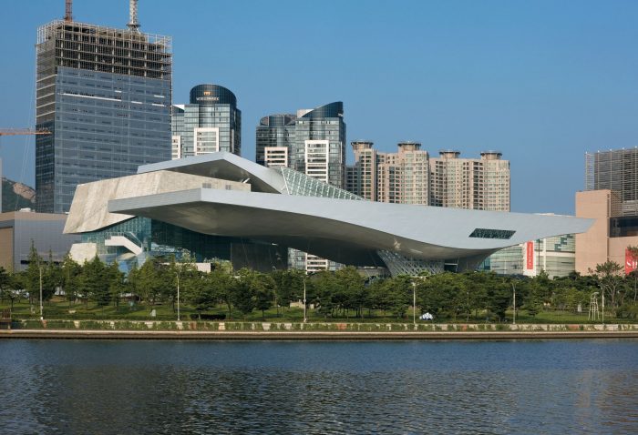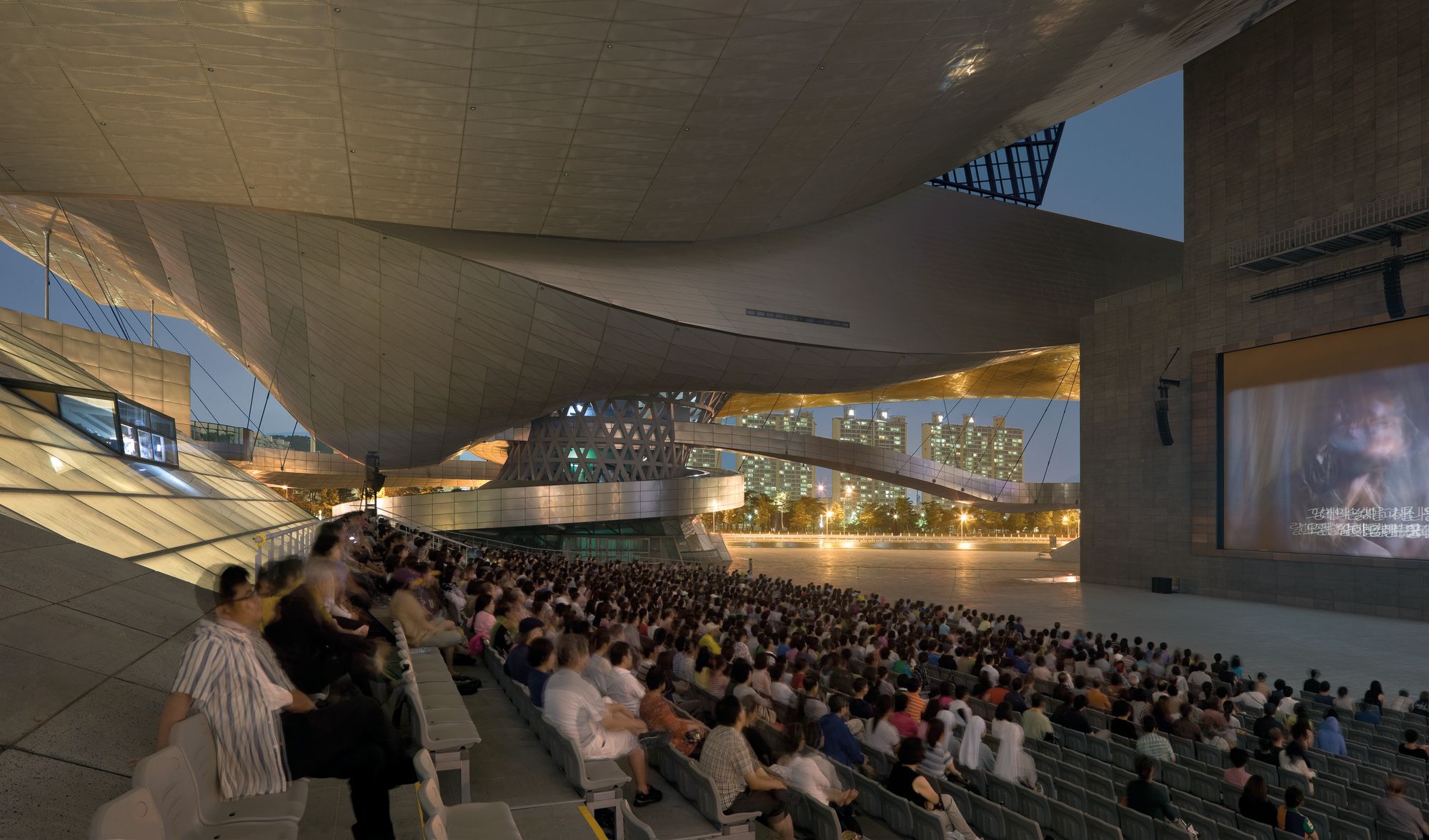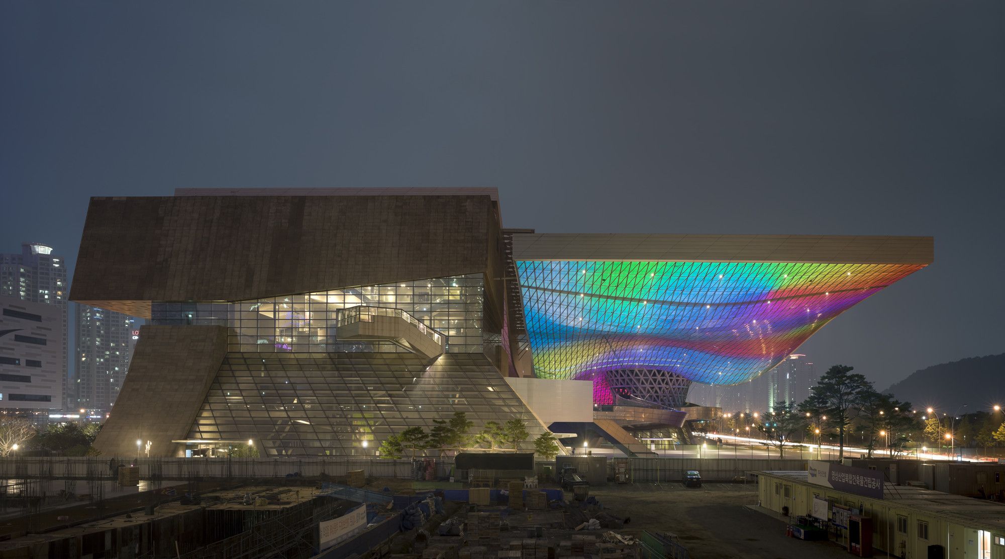 Coop Himmelb(l)au’s design for the Busan Cinema Center, which serves, among other things, as the site of the Busan International Film Festival (BIFF), represents a new combination of culture, entertainment, technology, and architecture with a public space. The concept envisions an urban center with superimposed areas: the Urban Valley, the Red Carpet Zone, the Walk of Fame, the Memorial Court, and the BIFF Canal Park. The buildings house theaters, cinemas, a conference center, offices, production studios, and restaurants, whose spatial boundaries flow into one another in a mixture of protected interior spaces and outdoor spaces, the largest of which also functions as an outdoor cinema with seating for 4,000 people.