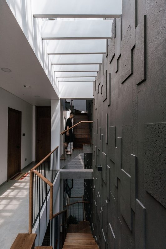 This is a cozy little house in the sub-urban of the Hochiminh city, a design for a three-generation. With limited site, the most important priority of the project is create a family-space which can make the closeness in their families. Besides, it is still necessary to give completely privacy for each member. Not only providing a fully equipped accommodation, the house is also an experience of various spaces and the attracted natural elements consist of light rhythm and windy journey.
