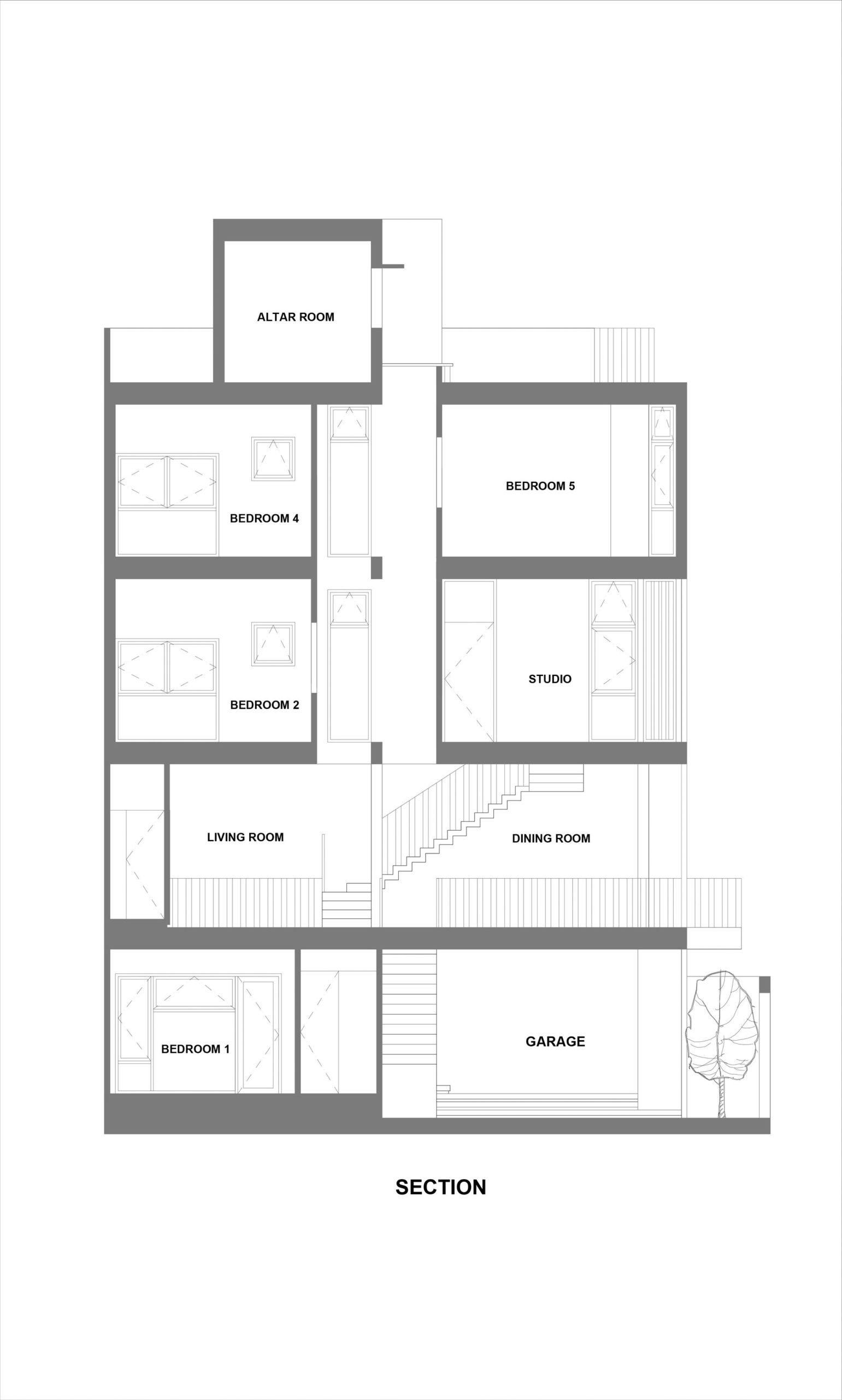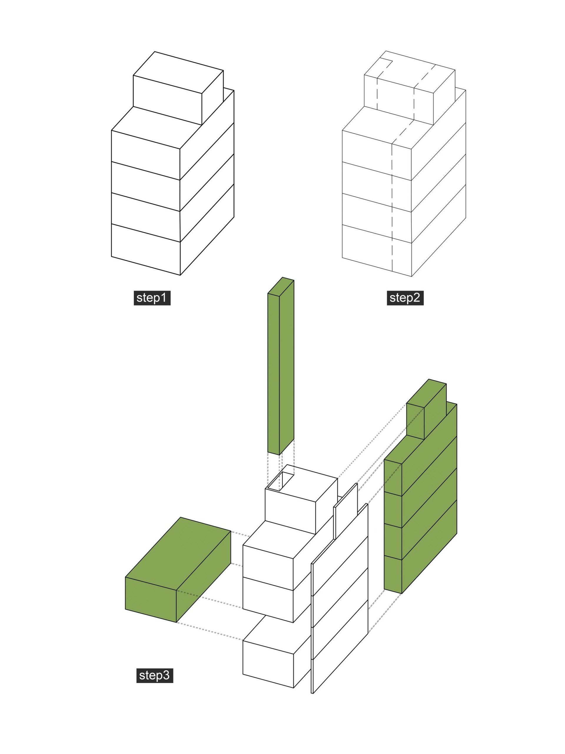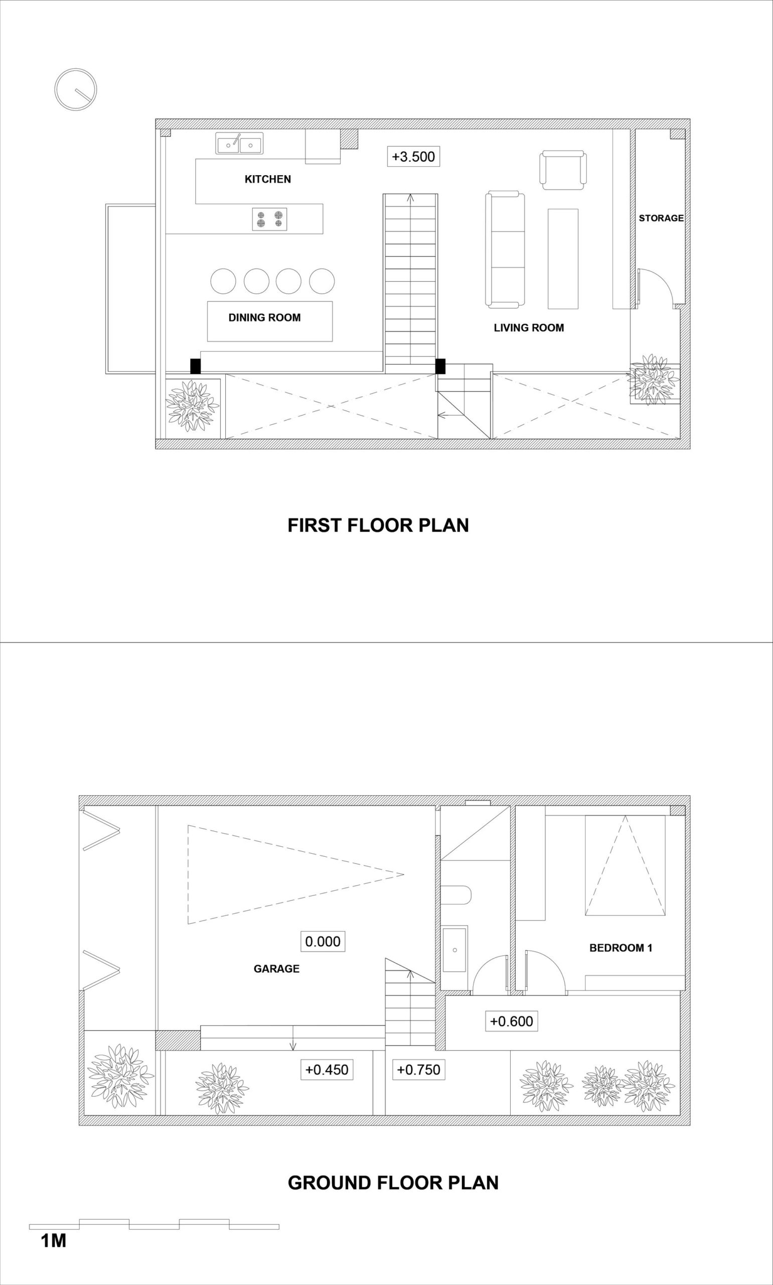 For the space problem, common spaces (living room-kitchen) are arranged in first floor, become an open-space in center which creating intersections outside of private spaces. Moreover, the ventilation corridor is arranged in boundary along the length of house combined with some voids can create an expanded impression of space and helps indoor illumination can be day-lighted. This is very useful for a city house just have only one frontage facing outside in the condition of tropical climate.
