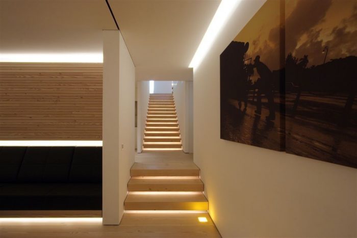 The new space is organized in two functional areas: the first, for service, is defined by a long linear counter, one meter-twenty high, cladded in white Corian and with a bottom light cover which grants it a sense of lightness in the space. The second area is the one reserved to the customers, and it’s characterized by a bench upholstered in white leather which runs longitudinally and turns around the walls at the end to emphasize the continuity and wrap the space as much as possible.