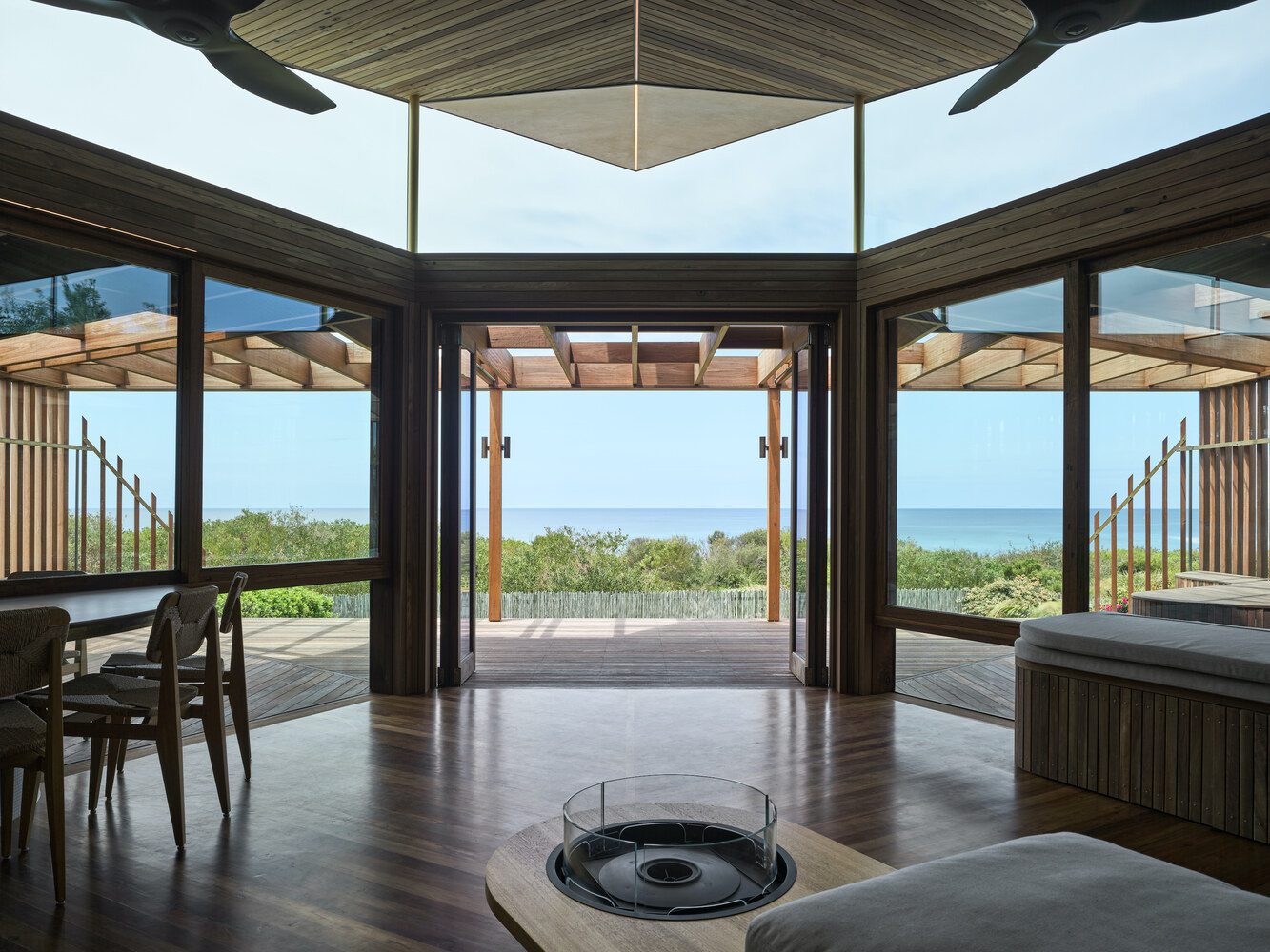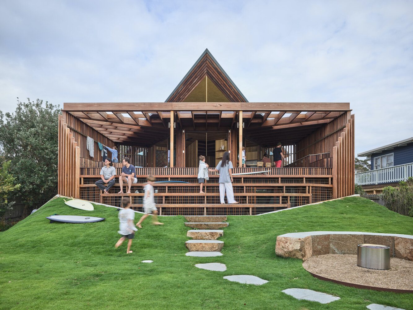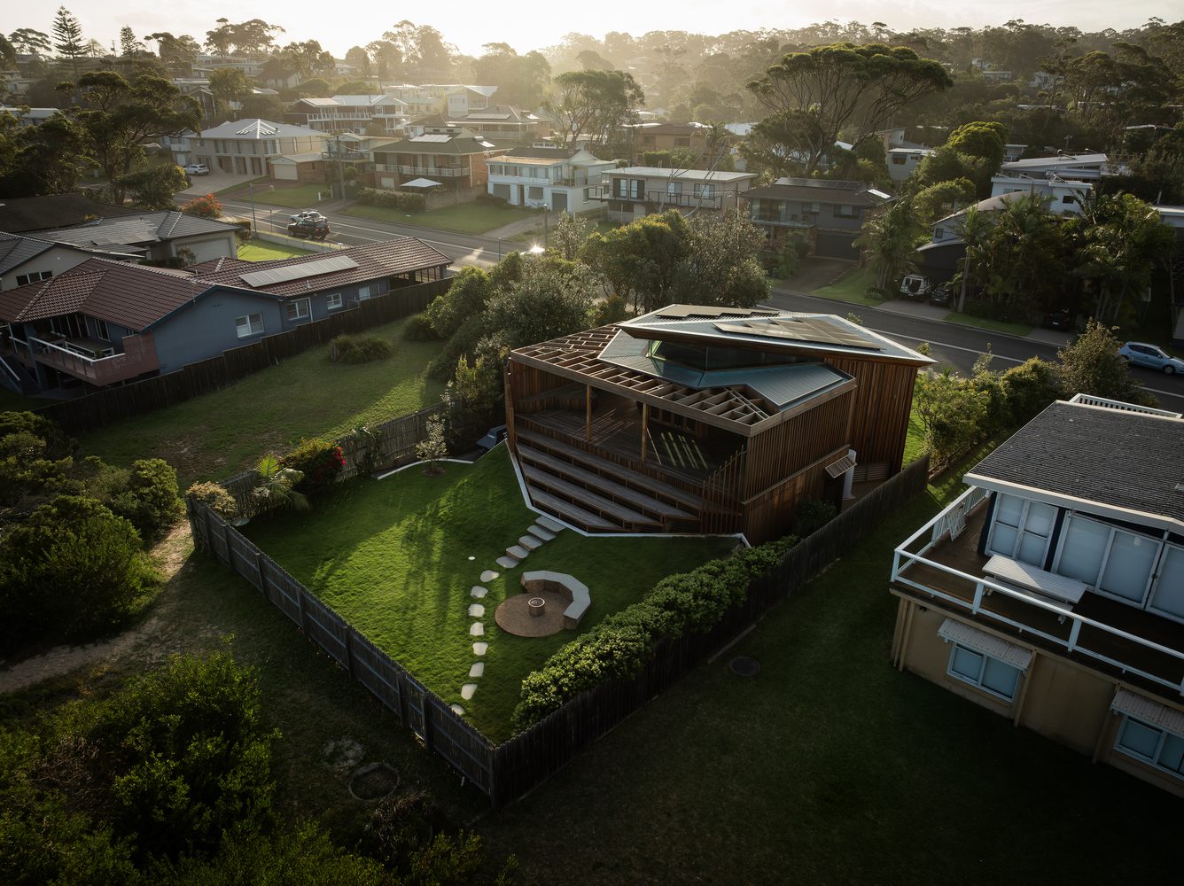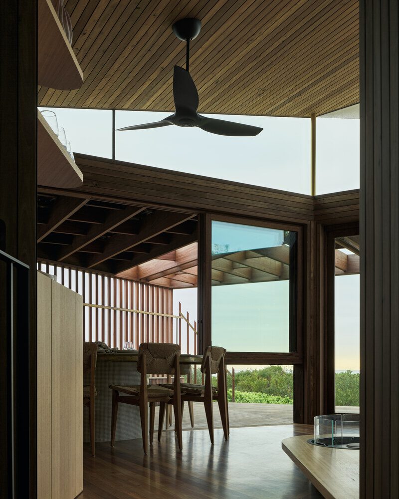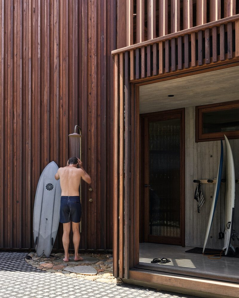 The original structure on site was affectionately known as ‘Cake House’ by the local community. Its sharp, kite-like shape provided the coastal town of Mollymook with an icon and a way-finding point for surfers. Respecting and upgrading this iconic shape became the overarching concept for the project. Additionally, a high-performance envelope, durability, and protection from storm surges were also emphasised.