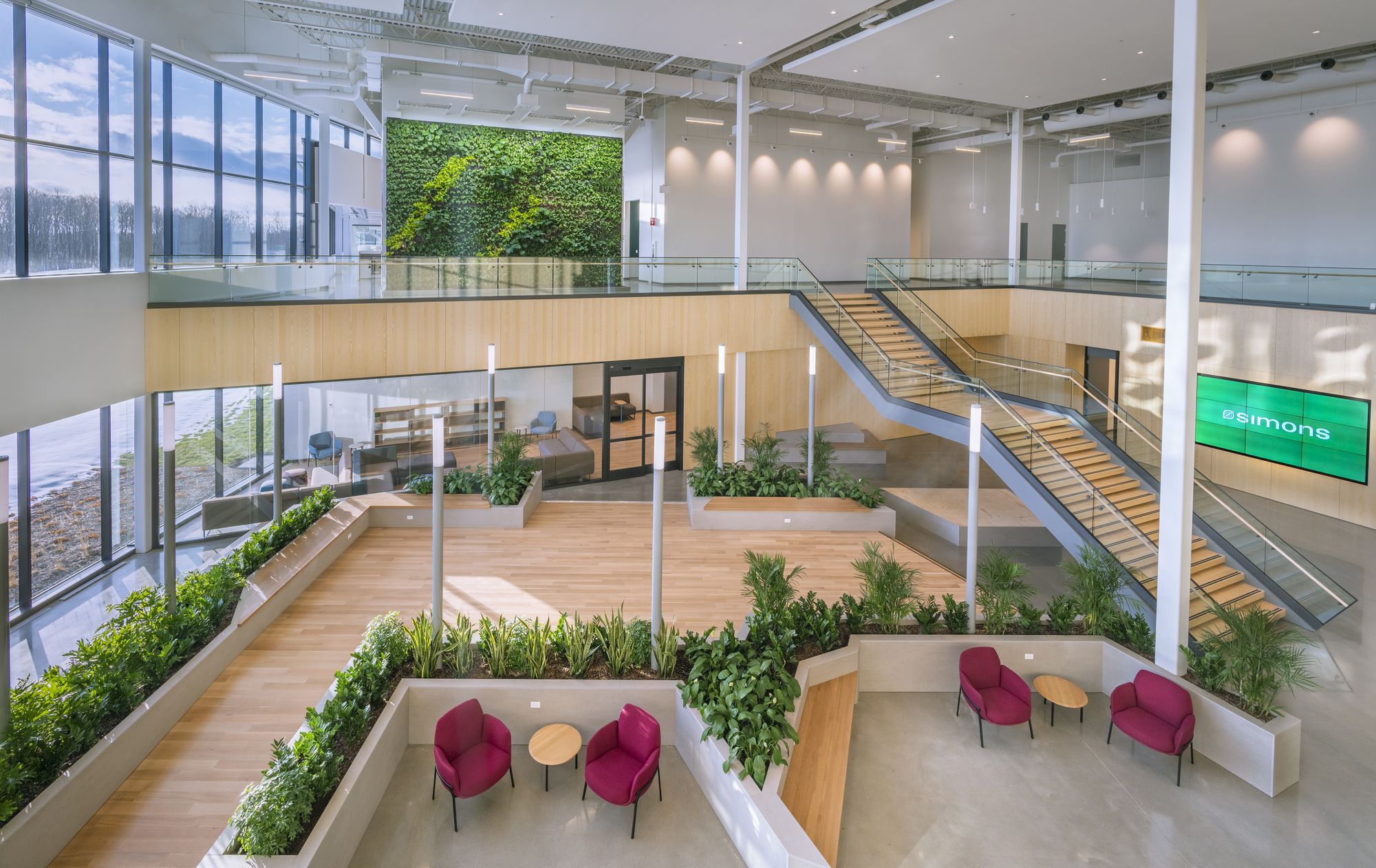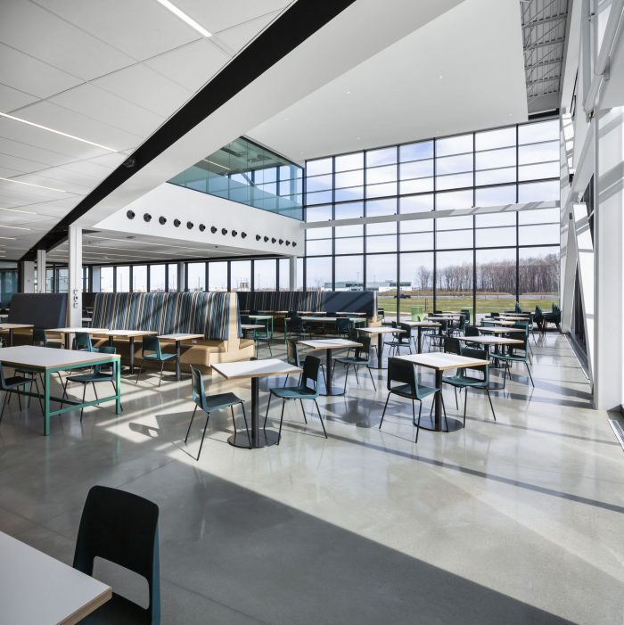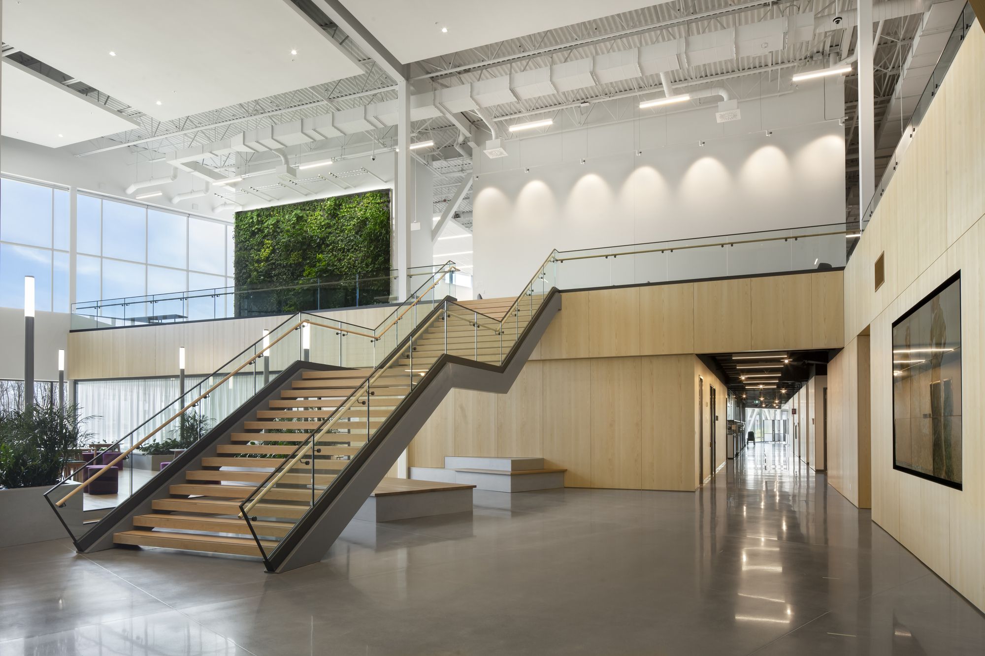 The objective of this approach was to foster the team and community spirit that underpin the values and culture of Maison Simons. The overall architectural composition as well as the interior architectural principles were dictated by the desire to put the user, the needs, and the functions of the program at the heart of our design. The Simons Campus Project’s identity and vocation are to provide La Maison Simons with a stimulating and inspiring work environment focused on the daily well-being of its employees.