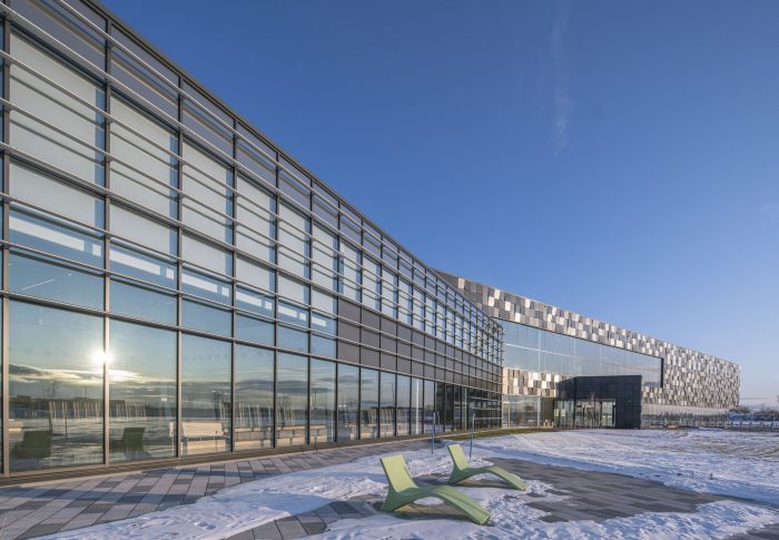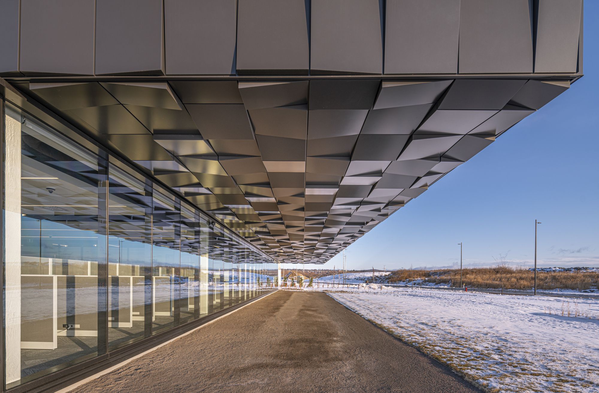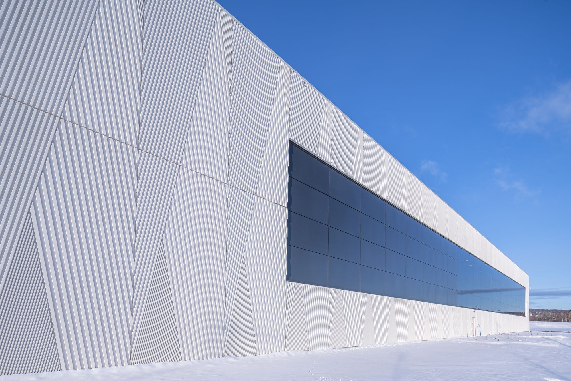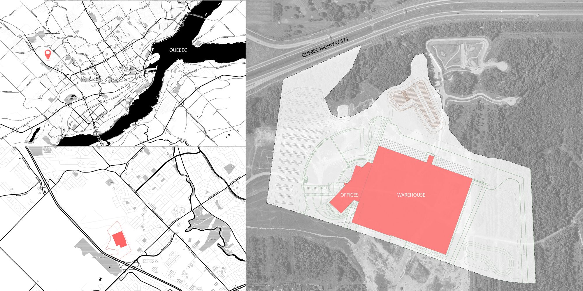 The project involves the creation and construction of a Distribution Centre for Maison Simons, a large chain of retail clothing and home decoration stores. The building, with a total area of 53,420 m2, is located on a 195,360 m2 piece of land in the north section of Quebec City, in the Espace d’innovation Chauveau. The new Distribution Centre and adjoining office space facility, named Campus Simons, offers an inspiring and architecturally modern design.