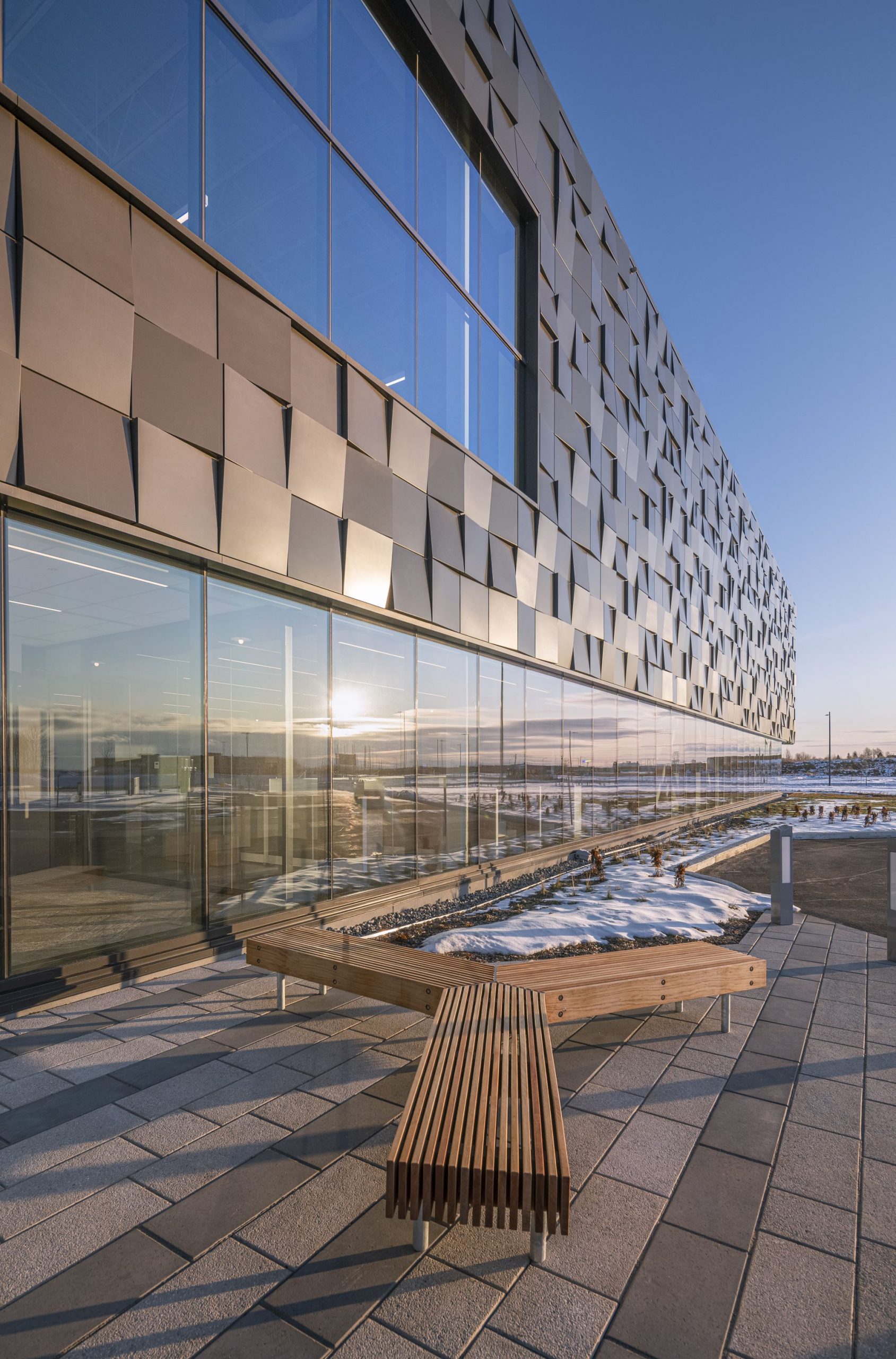 This large-scale, state-of-the-art industrial, and logistics development site presents a number of innovative aspects. Innovations Inspired by the fashion industry, the concept revolves around the symbolic themes of modeling and weaving and promotes architectural cohesion and occupant well-being. The project features pure lines and a contemporary, refined look. The office building brings together two overlapping volumes—one solid, the other glazed—that retrace the transformation of raw materials into a finished, woven product.